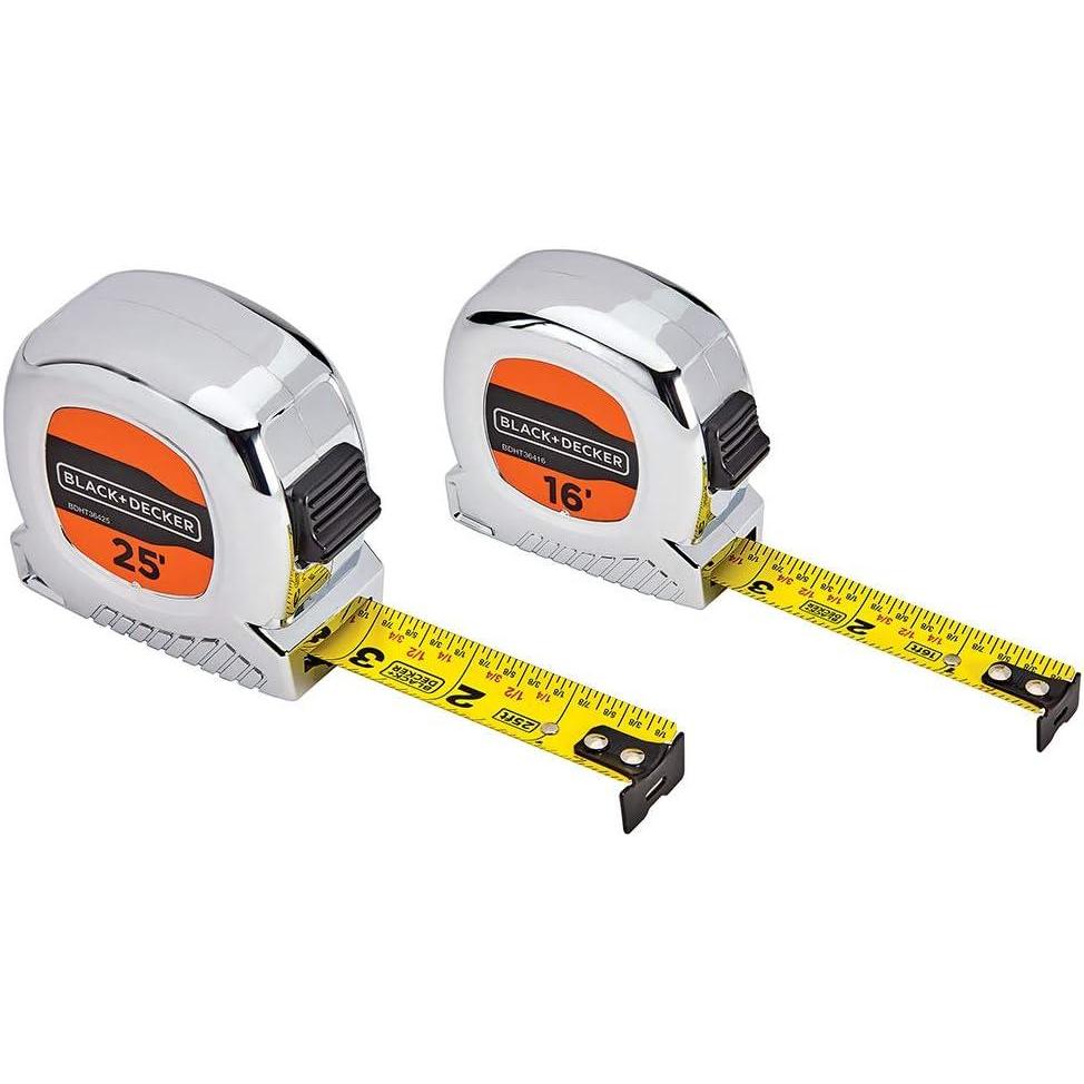 Ensure the success of your DIY projects with the beyond by BLACK+DECKER Tape Measure Bundle. This set of 2 tape measures with easy to read fractions delivers accuracy to the 7/8″. Use the convenient slide lock to keep the tape measure in place and retract it when you're done. Easy, accurate, and durable.About beyond by BLACK+DECKER beyond by BLACK+DECKER curates tools for the DIYer and home improvement enthusiast. Make projects fun again with easy-to-use and efficient devices to tackle jobs of all sizes. Home, garden, and yard maintenance have never been this effortless.