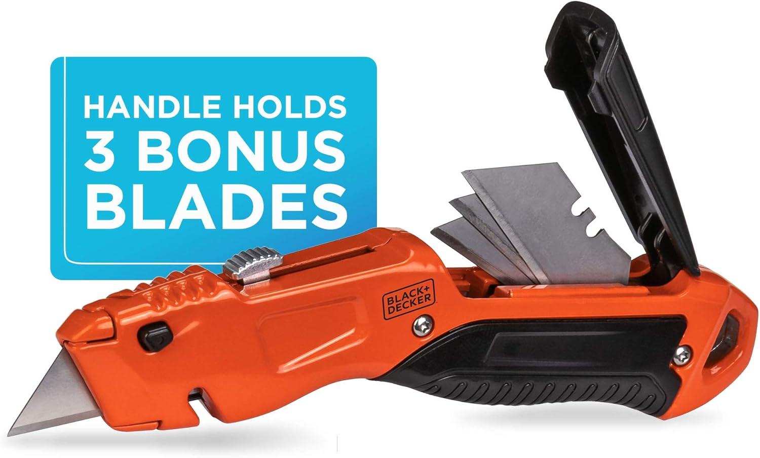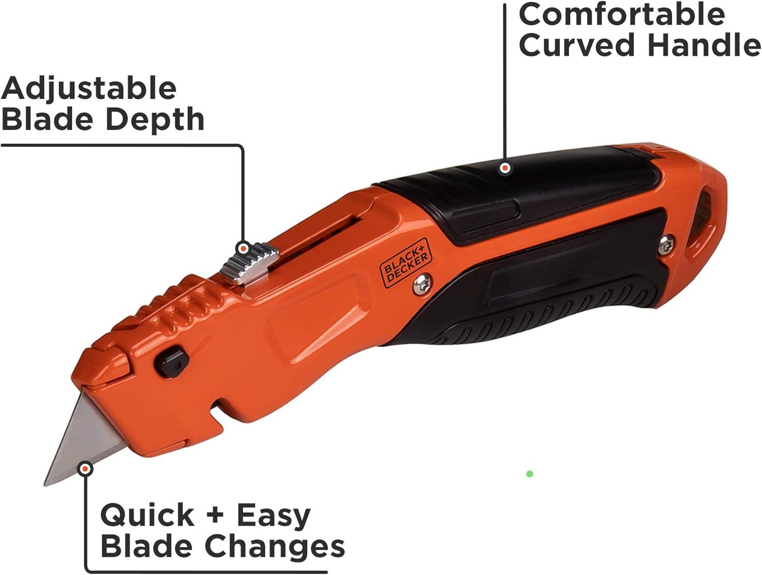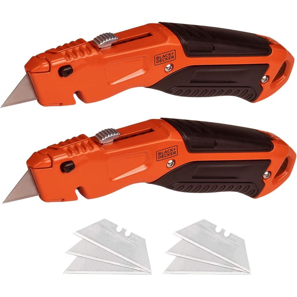 This 2-pack of beyond by BLACK+DECKER Utility Knives is designed to easily and efficiently cut everyday items around the home. Cut everything from packaging (including corrugate, straps, tape, plastic, and twine) all the way up to more advanced construction cutting (drywall, roofing paper and shingles, shaving wood, landscape fabric, and more). Quickly and easily change blades with the press of a button and have the peace of mind that 5 additional blades can be stored in the handle when you need a replacement. This knife provides the versatility to cut at 3 different depths. A great addition to any toolbox, tool bag, or tool kit. About beyond by BLACK+DECKER beyond by BLACK+DECKER is a curated collection of easy-to-use tools and products for in and around your home. Home, garden, DIY projects, and yard maintenance have never been this effortless.