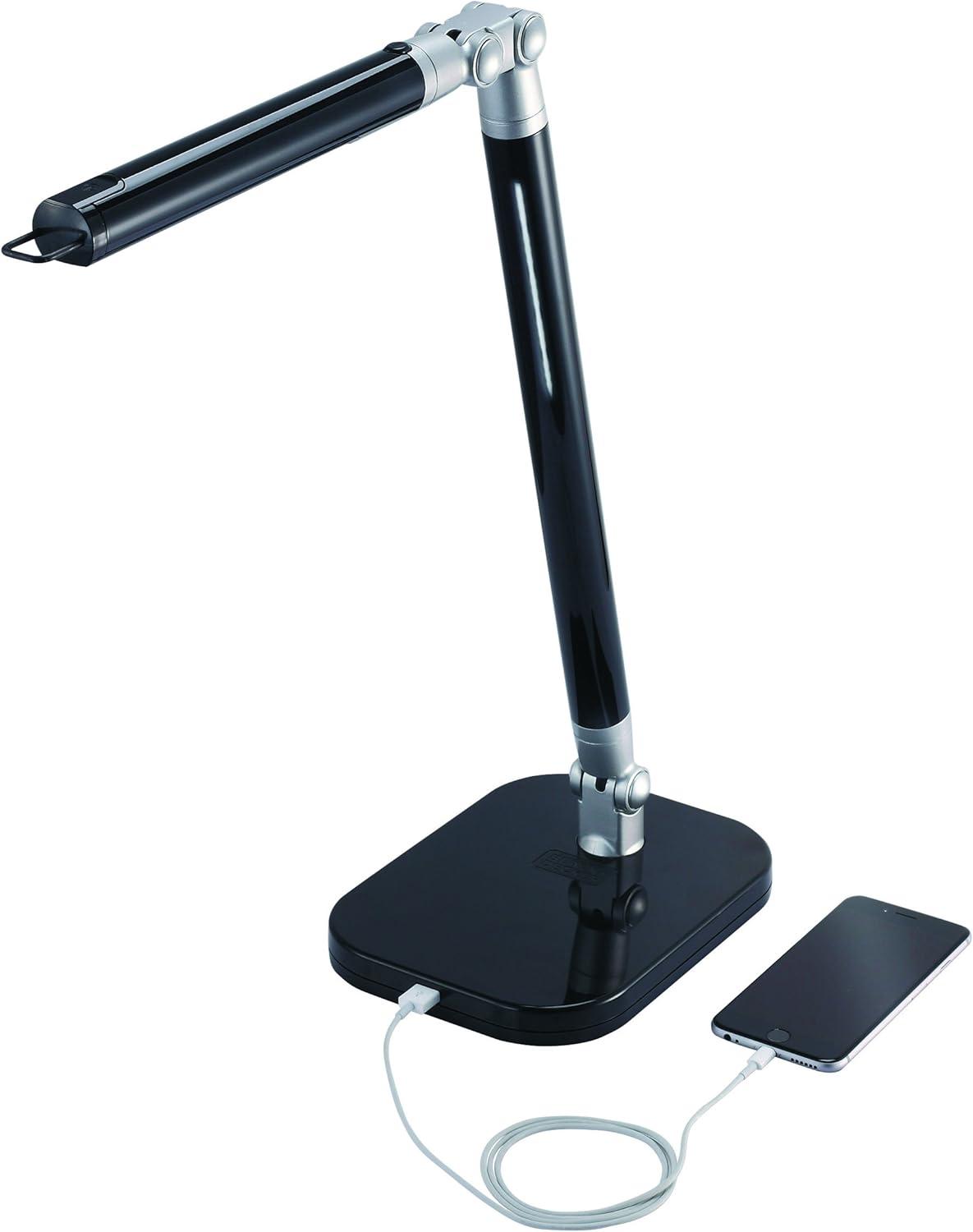 Black and Decker Office LED5ELIGHT-WHTRED PureOptics Exalt Flash 5W Flicker-Free Natural Daylight LED Desk Lamp, 13.5″ x 6″ x 19″, White/Red(Black/Gray)