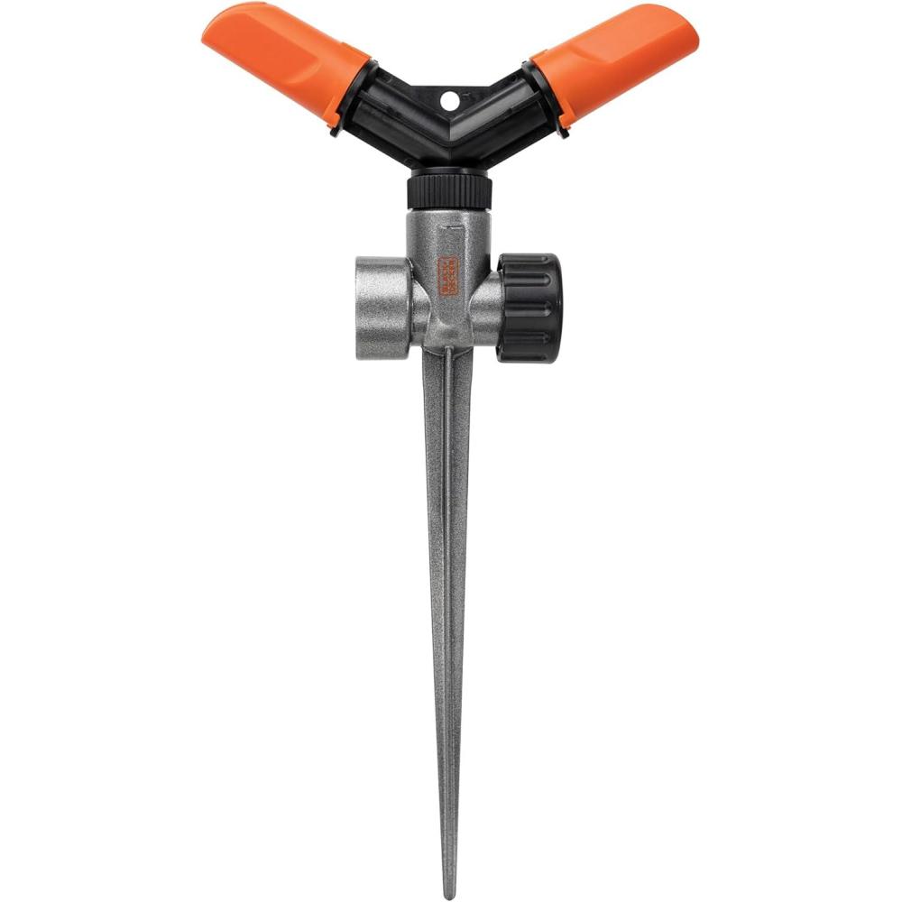 The Black + Decker® 2-Arm Spinning Sprinkler with Zinc Spike is the go-to solution for small to medium-sized lawns, flowerbeds, and gardens that need flexible watering. With a coverage diameter of up to 49 feet, this compact sprinkler features adjustable spinning arms that let you fine-tune the spray direction and distance. Its cast zinc spike base drives securely into the ground, keeping the unit stable while in use. Lightweight and easy to relocate, it’s great for spot-watering or shifting between zones. The flow-through connection makes it easy to set up multiple sprinklers in a series, extending your reach with ease. Built to last and backed by a 5-year limited warranty, it’s another smart, dependable watering tool from Black + Decker®.