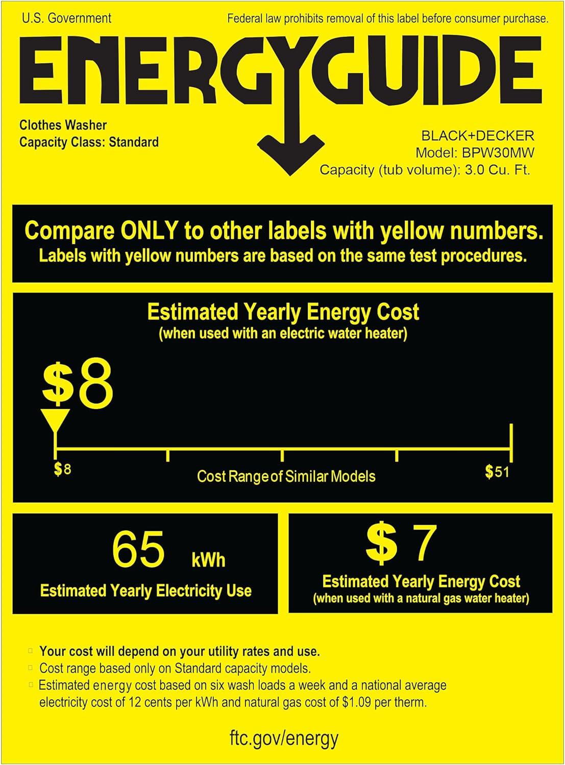 BLACK+DECKER 0.9 Cu. Ft. Portable Washer, 6.6 lb. Capacity Washing Machine for Homes & Apartments, 5 Wash Cycles, Quick Connect Sink Adapter and Drain Hose Included, Transparent Lid, BPWM09W, White(3.0 Cu. Ft.)