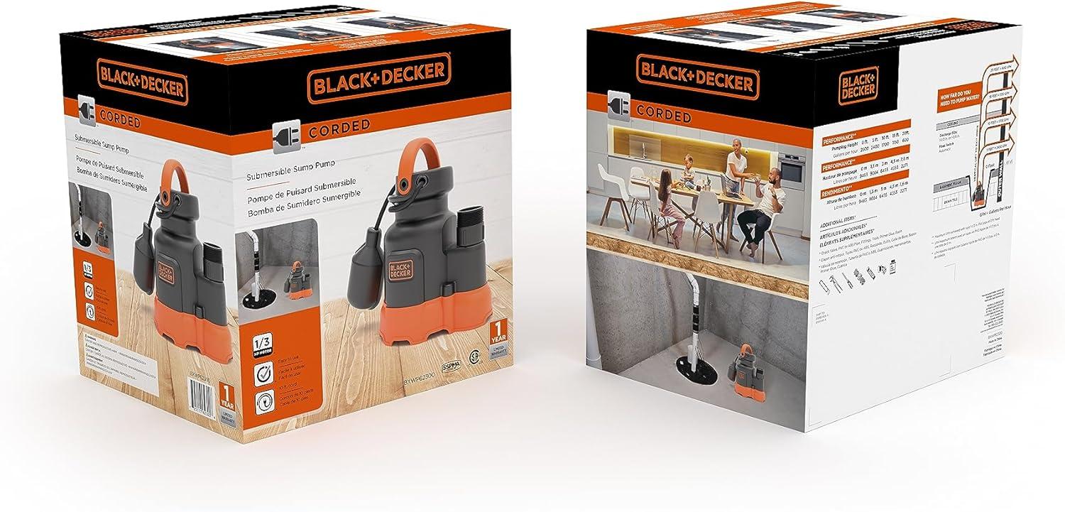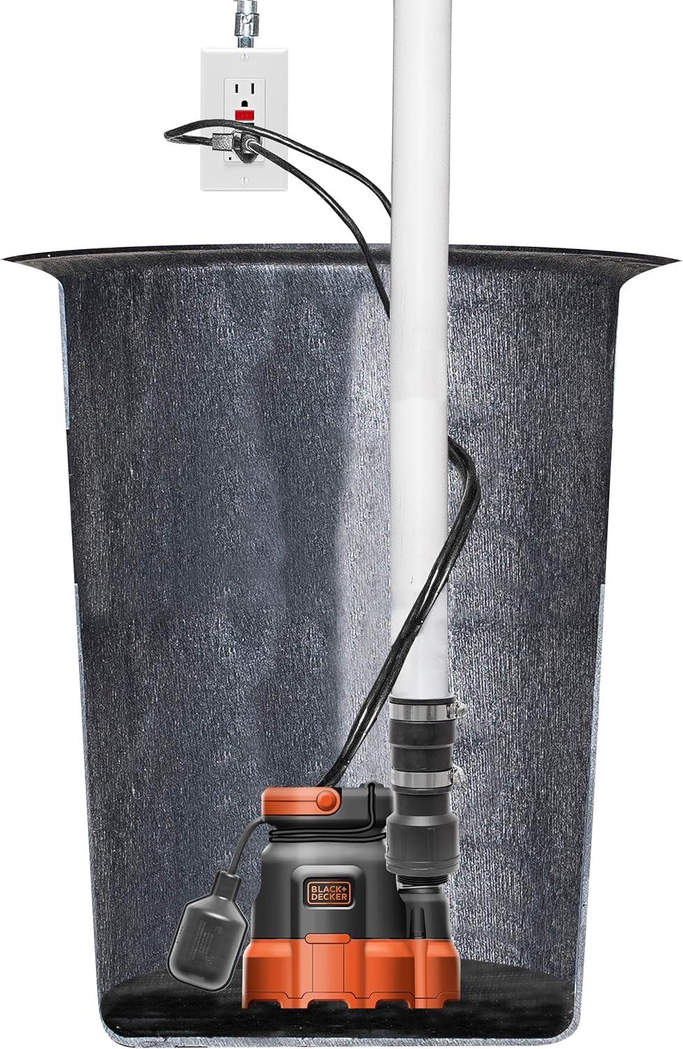 Black+Decker 1/3 HP Submersible Sump Pump, Pumps up to 2500 GPH(1/4 HP)