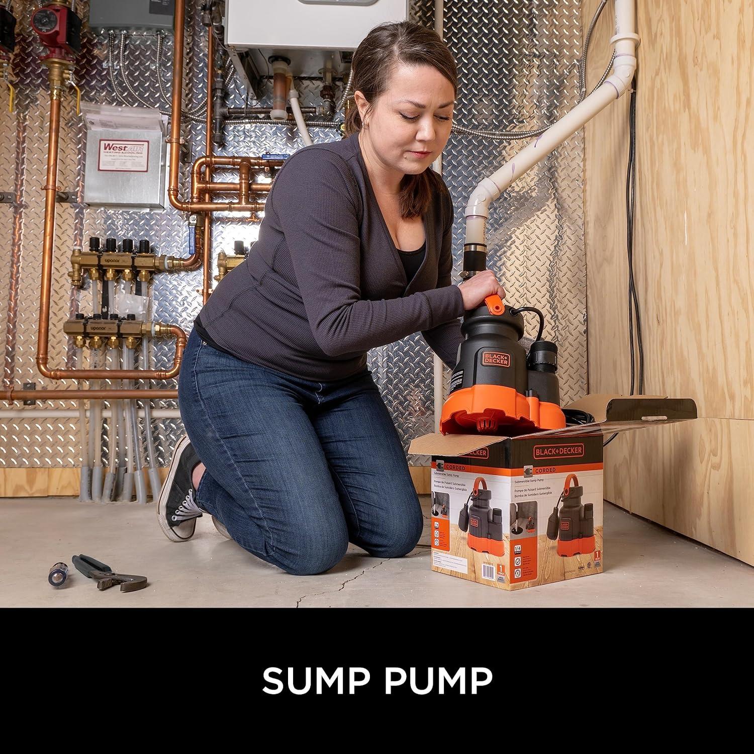 Black+Decker 1/3 HP Submersible Sump Pump, Pumps up to 2500 GPH(1/4 HP)