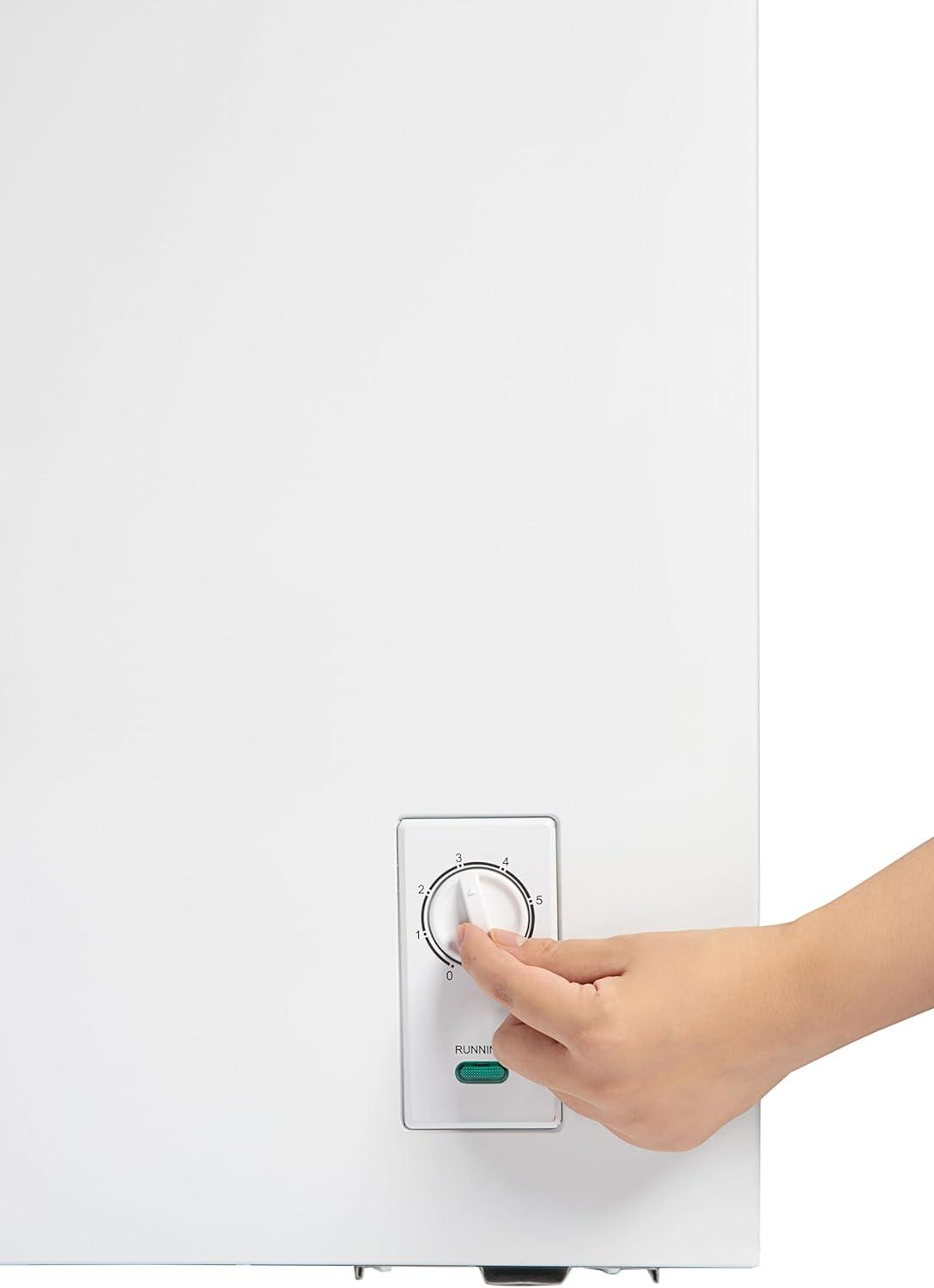 Mechanical Temperature Control: The freezer chest includes a mechanical temperature control dial and indicator lights located on the outside, allowing precise adjustments without opening the freezer