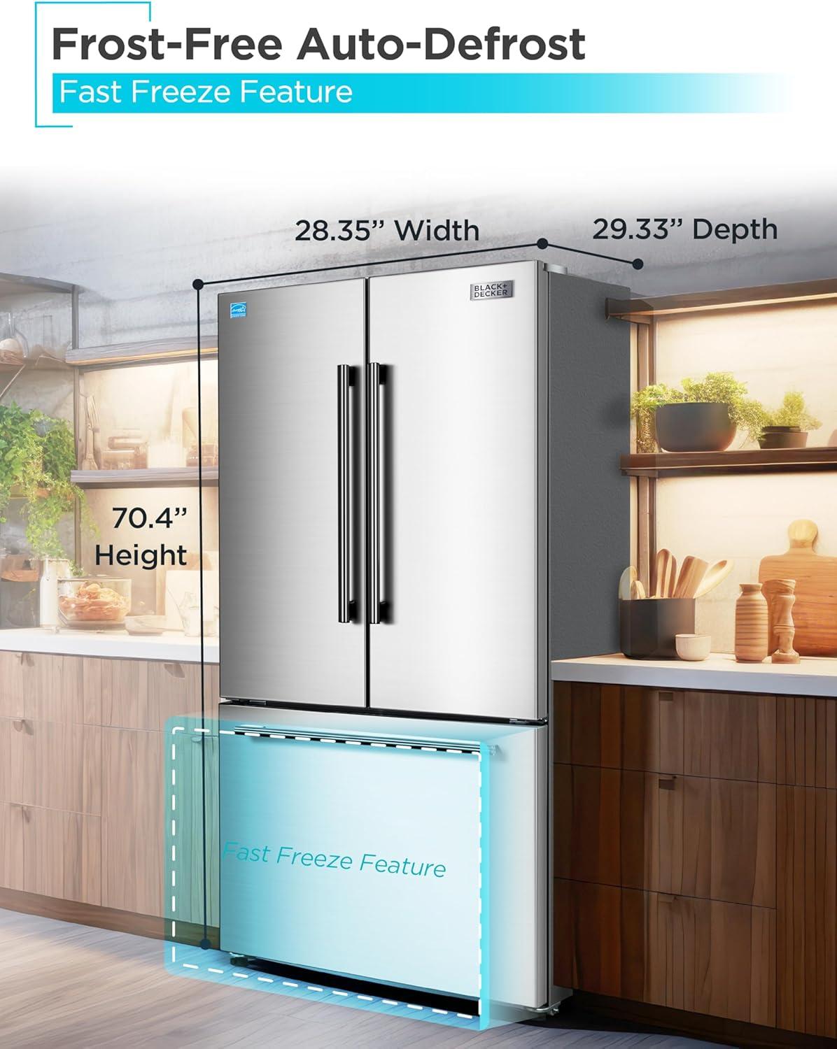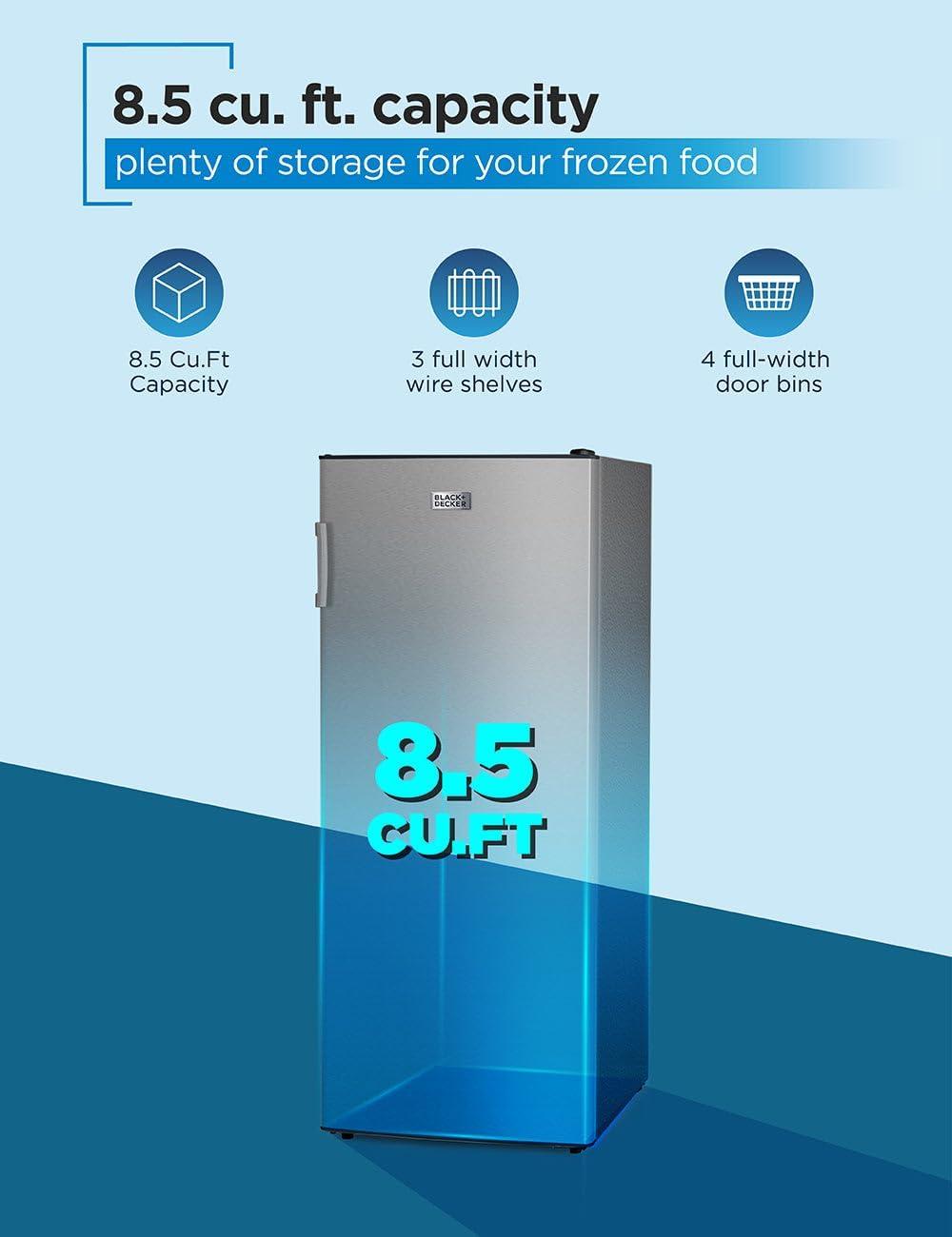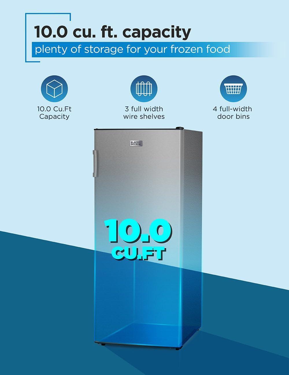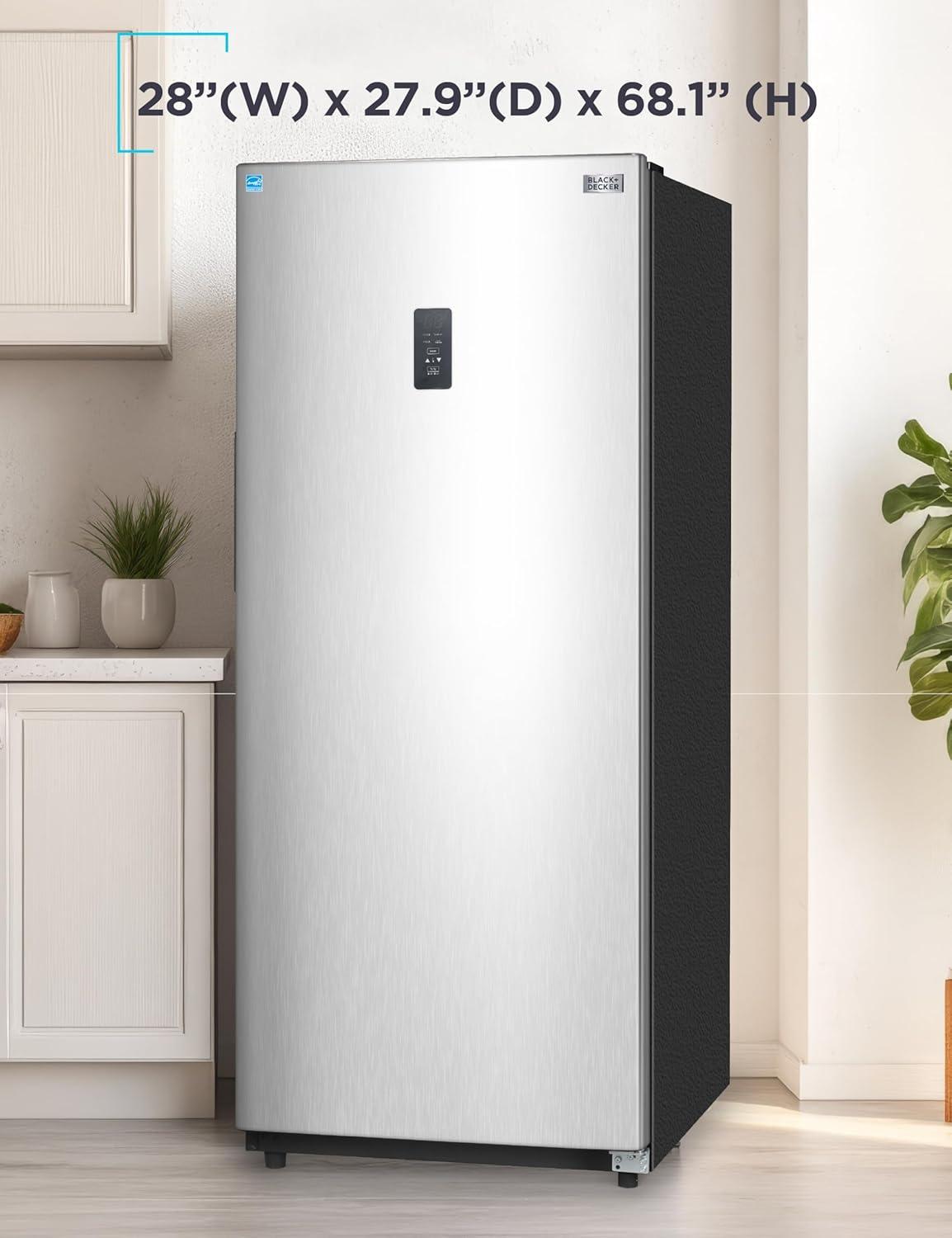 BLACK+DECKER 17 Cu. Ft. Convertible Freezer Refrigerator, Upright Freezer with Glass Shelves, ENERGY STAR rated, Frost Free, BUC1700XS, Stainless Look(Stainless Steel Look)