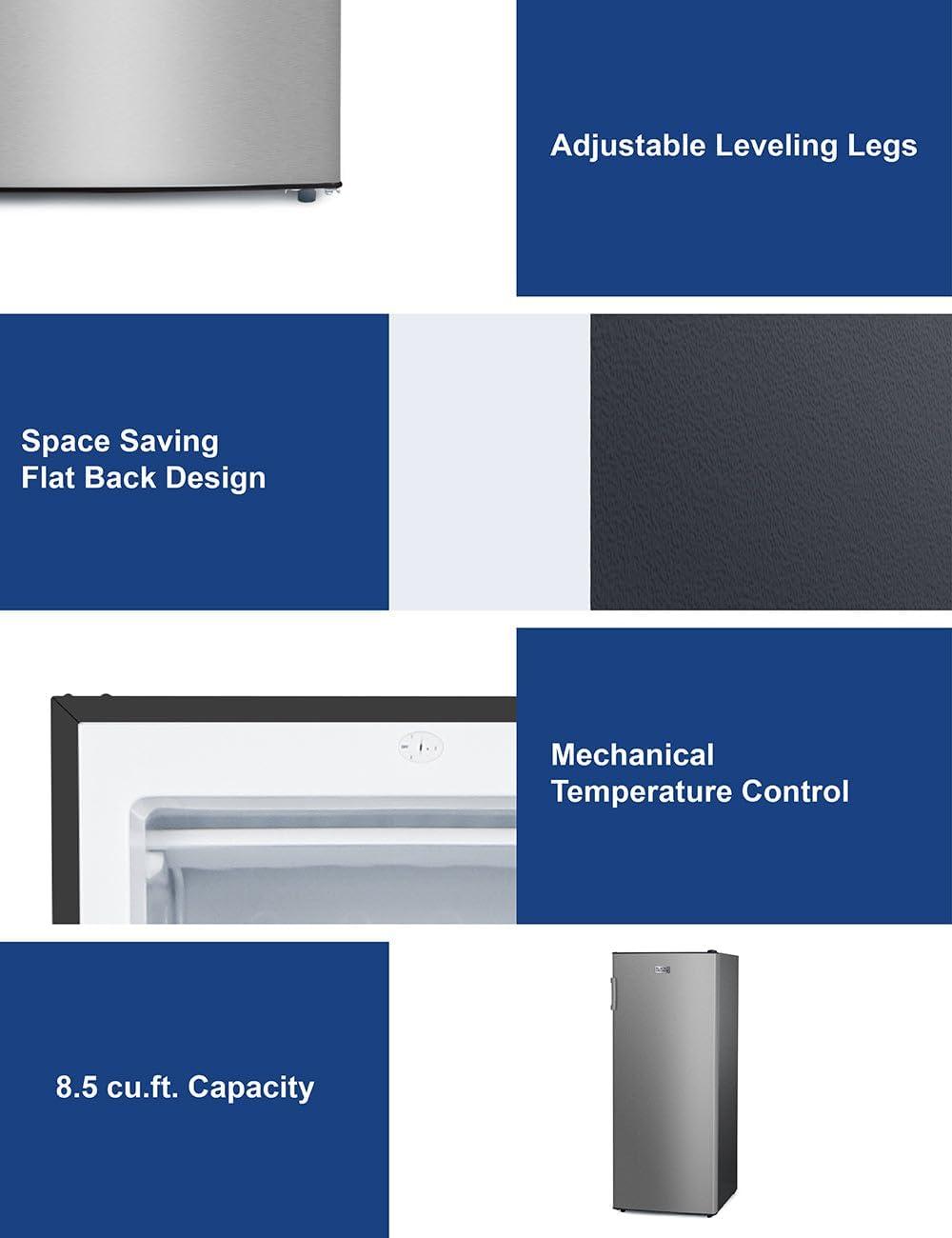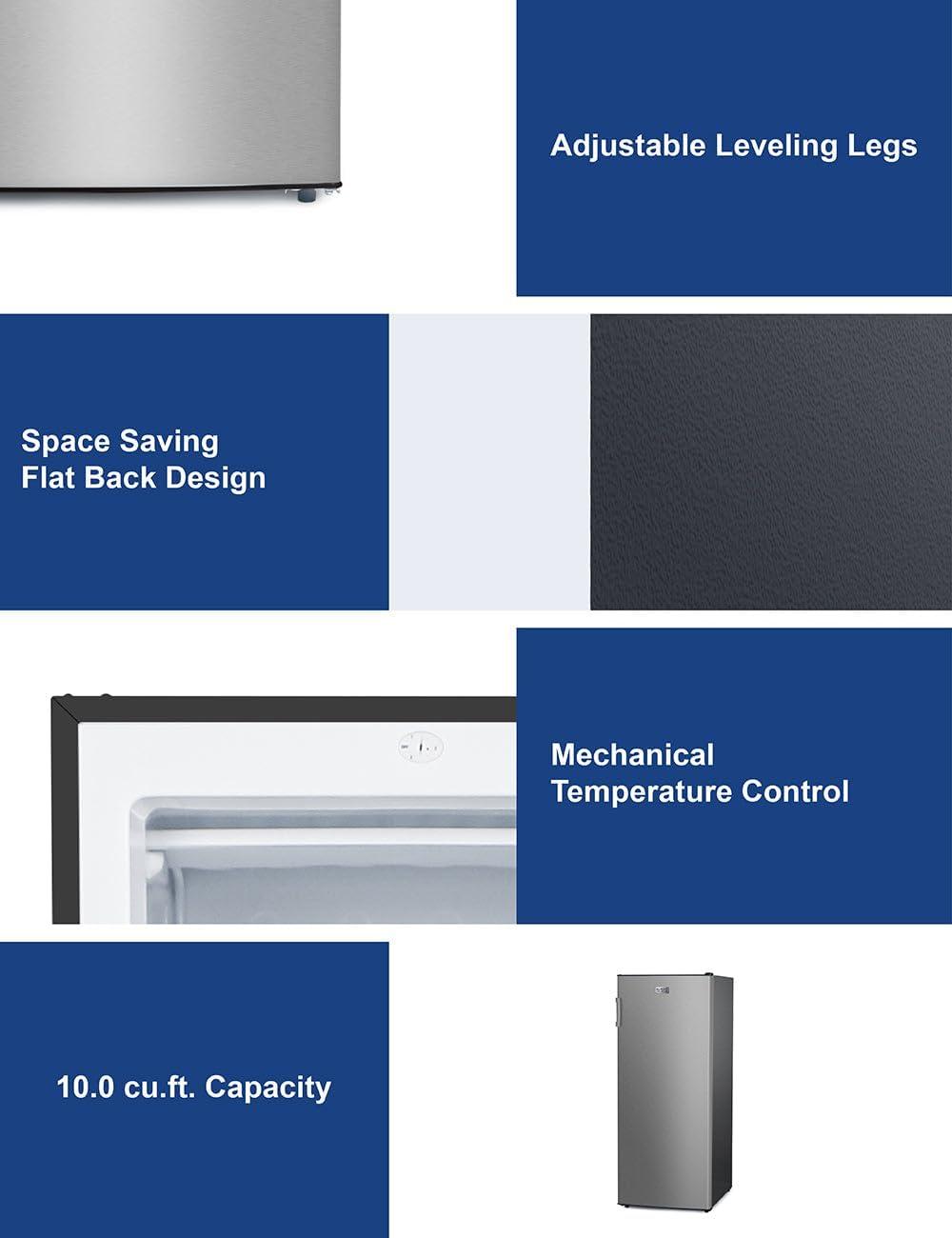 Energy Star Qualified: This upright deep freezer meets ENERGY STAR standards, providing an efficient, eco-friendly standing freezer solution for any space while reducing energy costs
