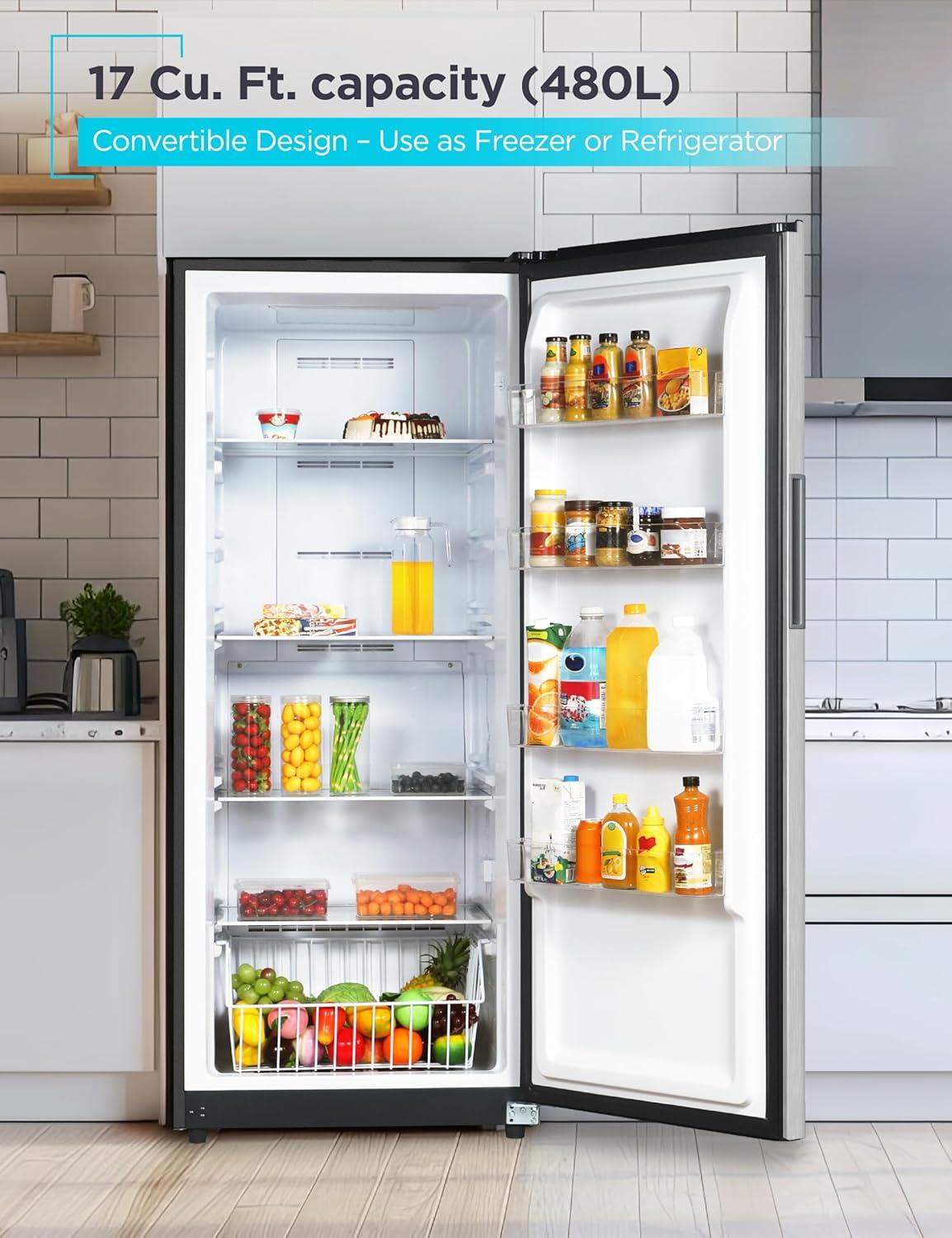 Convertible Design: This versatile 17 cu. ft. stand up freezer effortlessly transitions to a full size refrigerator, offering adaptable freezer storage and food storage solutions for various needs