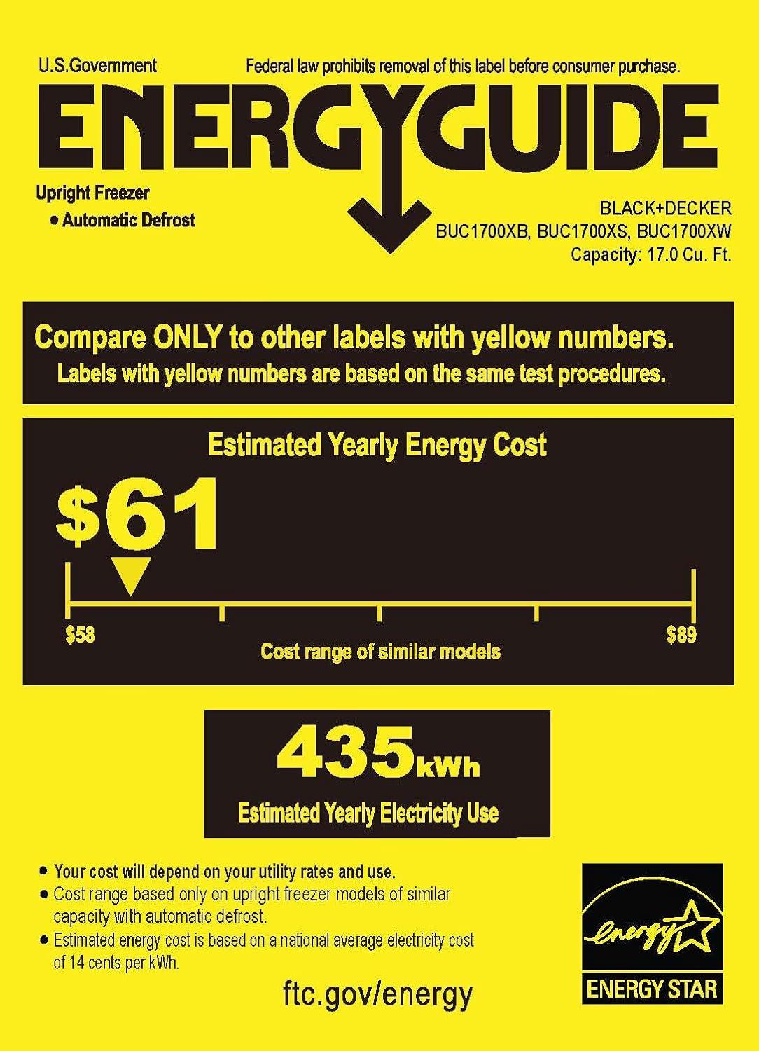 BLACK+DECKER 17 Cu. Ft. Convertible Freezer Refrigerator, Upright Freezer with Glass Shelves, ENERGY STAR rated, Frost Free, BUC1700XS, Stainless Look(White)