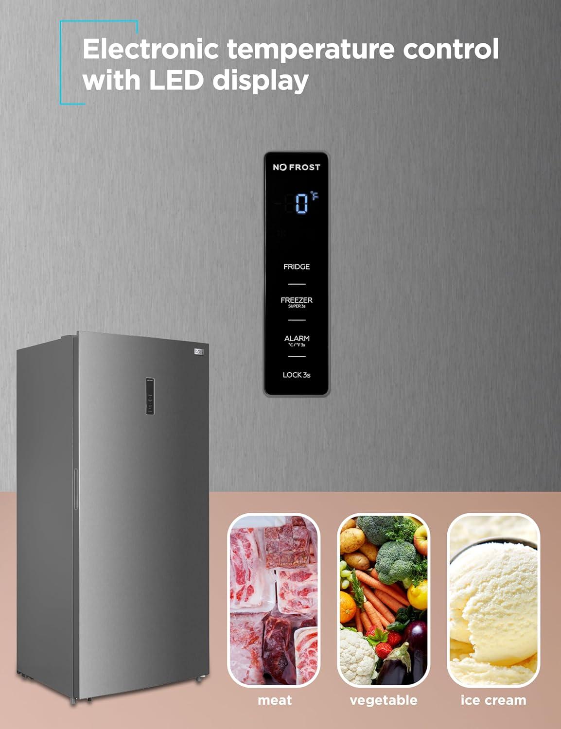Electronic Control: Manage your standing freezer refrigerator settings with ease using the LED display, ensuring precise temperature control in both garage freezer and vertical refrigerator mode