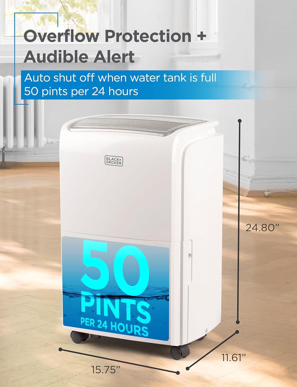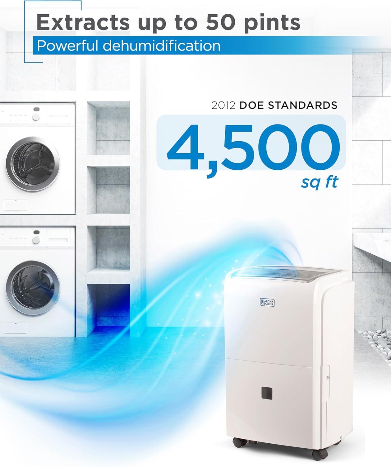 BLACK+DECKER 20-Pint Portable Dehumidifier, Dehumidifier for Home up to 1500 Sq. Ft. Coverage, For Basement and Medium to Large Spaces, Removable Bucket and Drain Hose Included, BDT20MTB, White(4500 Sq Ft with Wifi)