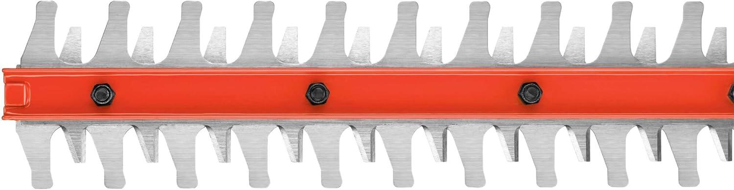 22-inch dual-action blades of the battery powered hedge trimmer cut branches with up to 40% less vibration than single action blades