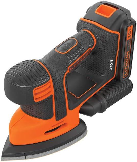 INCLUDES – (1) BDCMS20 sander, (1) 20V MAX* 1.5Ah lithium ion battery, (1) charger, (1) detail finger attachment, (2) sheets of sandpaper, (1) sheet of detail finger sandpaper, (4) extra sheets of tip sandpaper.