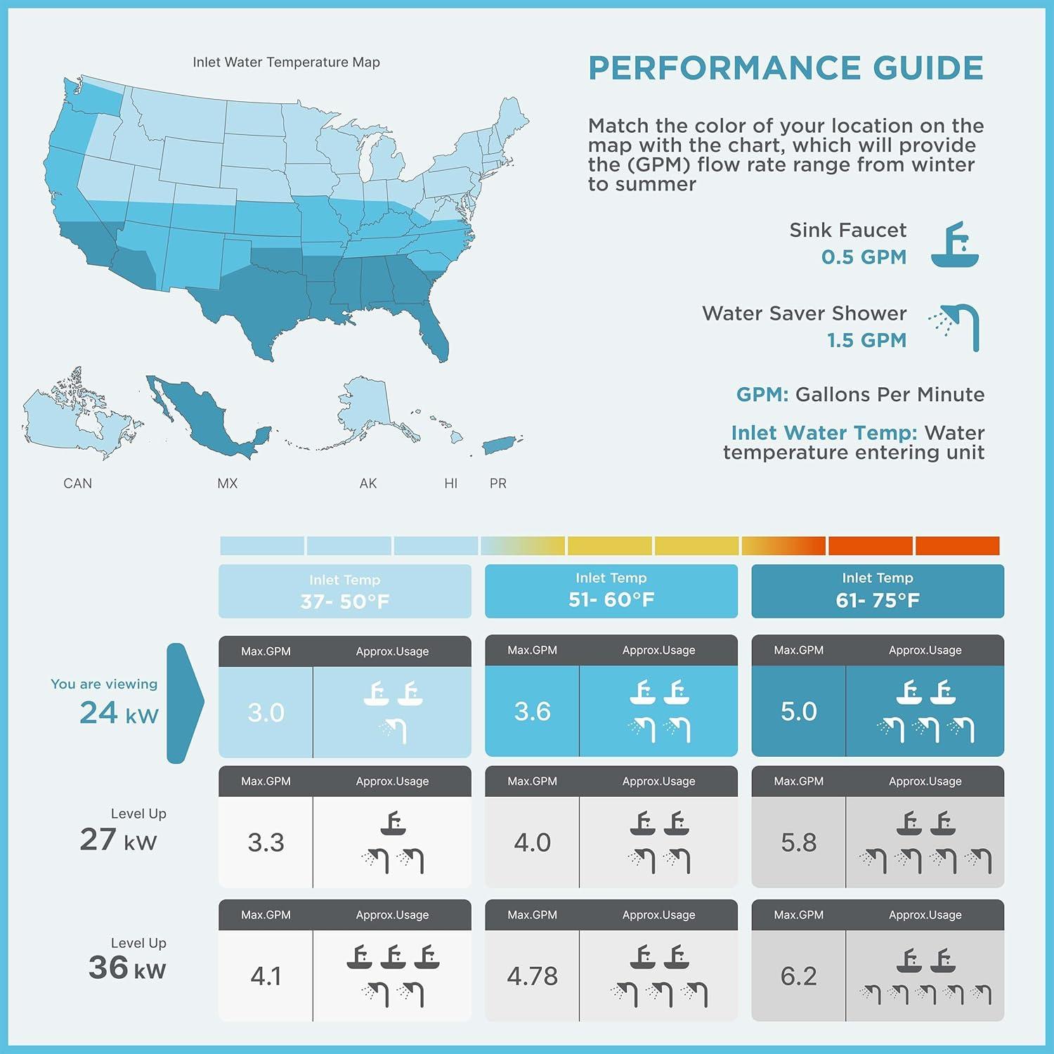 Hot Water on Demand: Powerful 24kW heating system provides endless hot water with automatic water flow sensors. Ideal for entire home to receive instant and continuous hot water in seconds. Self-modulating unit allows you to set and maintain desired temperature in increments of 1℉. Easy-to-use and read digital temperature display.