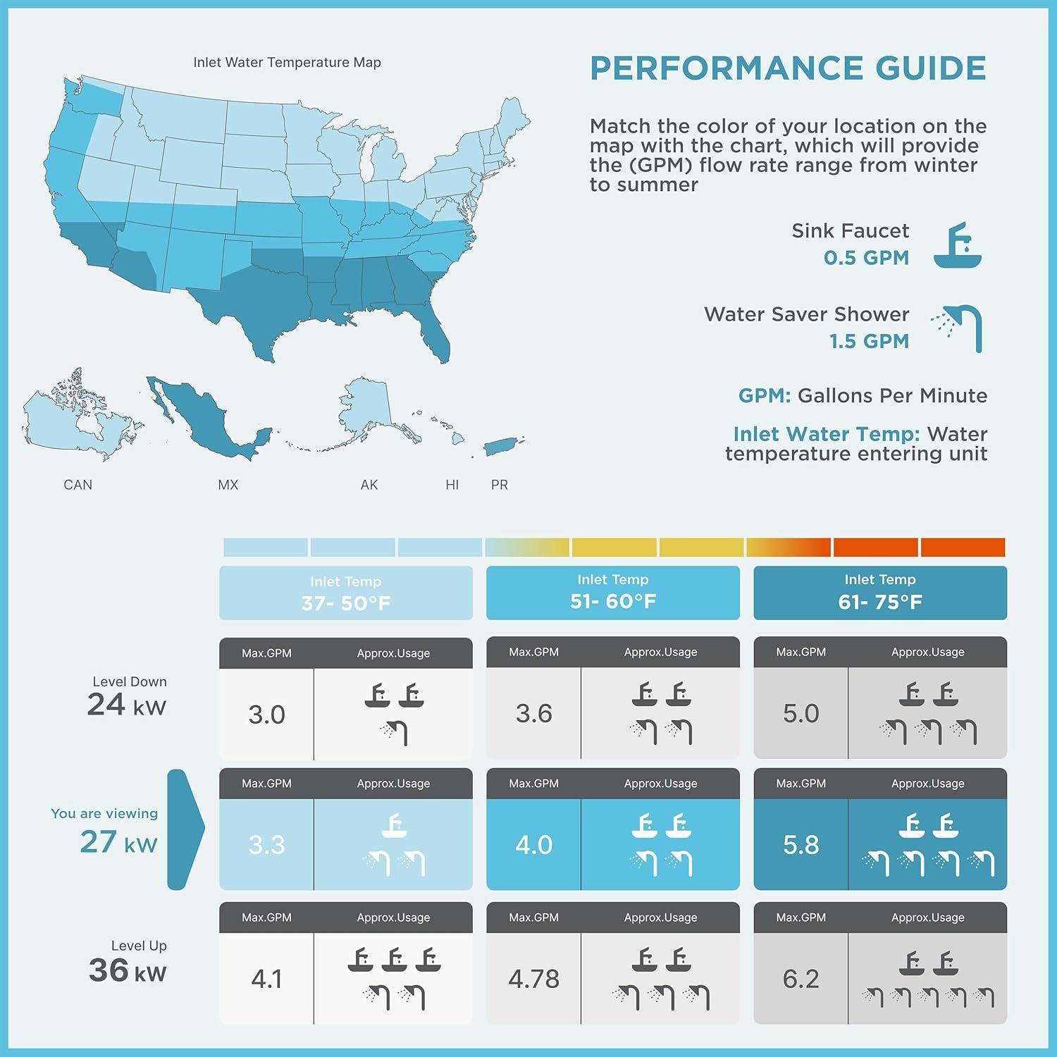 Hot Water on Demand: Powerful 24kW heating system provides endless hot water with automatic water flow sensors. Ideal for entire home to receive instant and continuous hot water in seconds. Self-modulating unit allows you to set and maintain desired temperature in increments of 1℉. Easy-to-use and read digital temperature display.