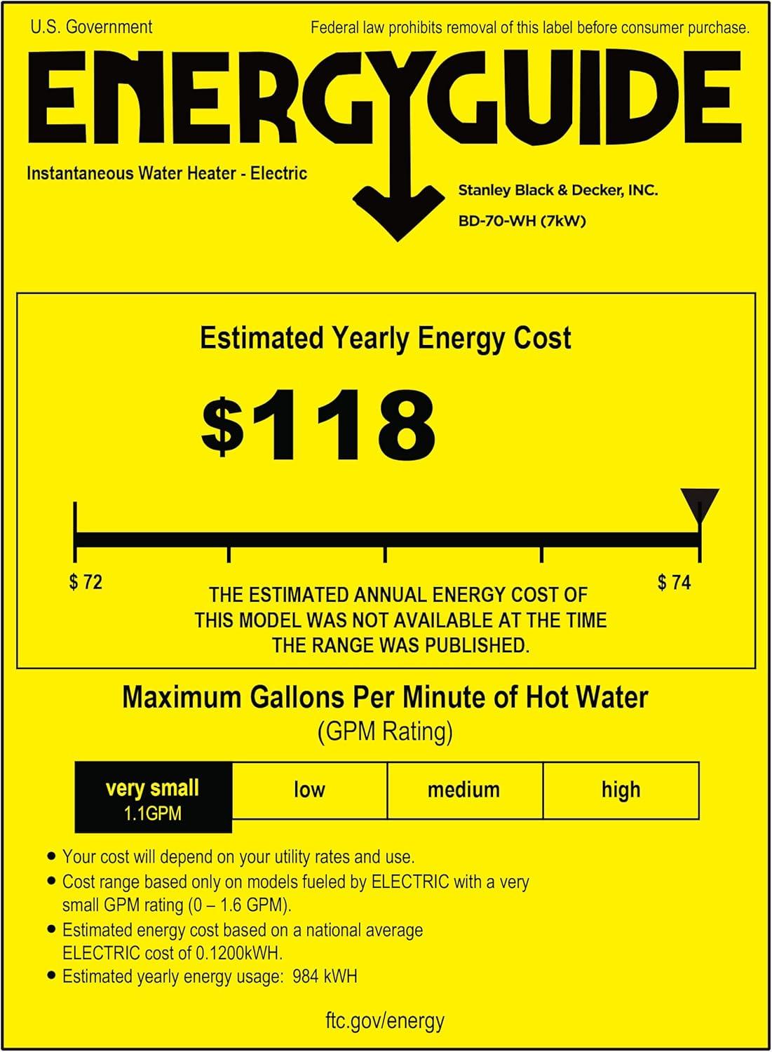 BLACK+DECKER 24kW 240 Volt 4.68GPM Tankless Electric Water Heater, Self-Modulating Multi-Application Unit for Whole House, Hot Water on Demand, Digital Temperature Display(7 KW)