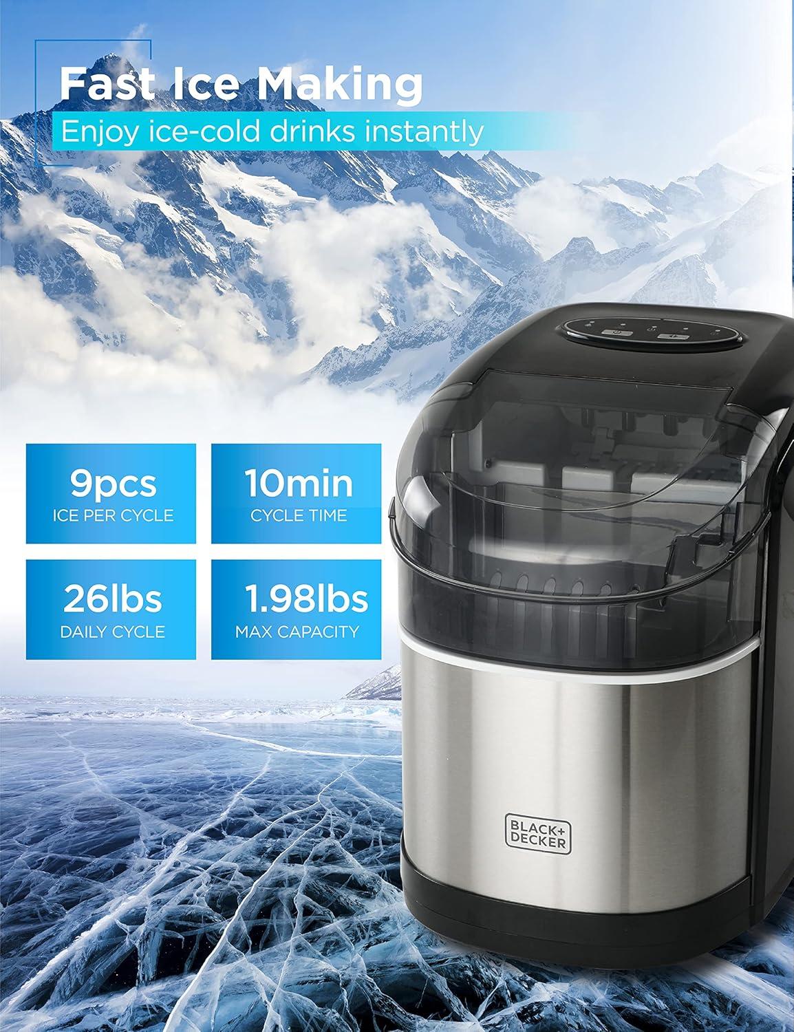 BLACK+DECKER 26 lb. Capacity Ice Maker(Stainless Steel & Black)