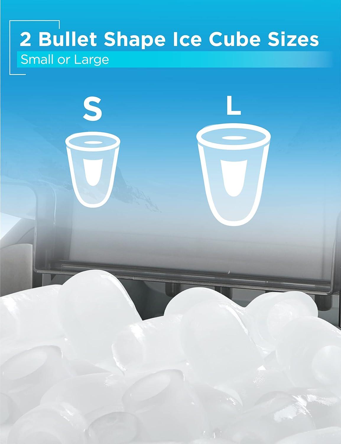 2 bullet shape ice cube size choices – large or small