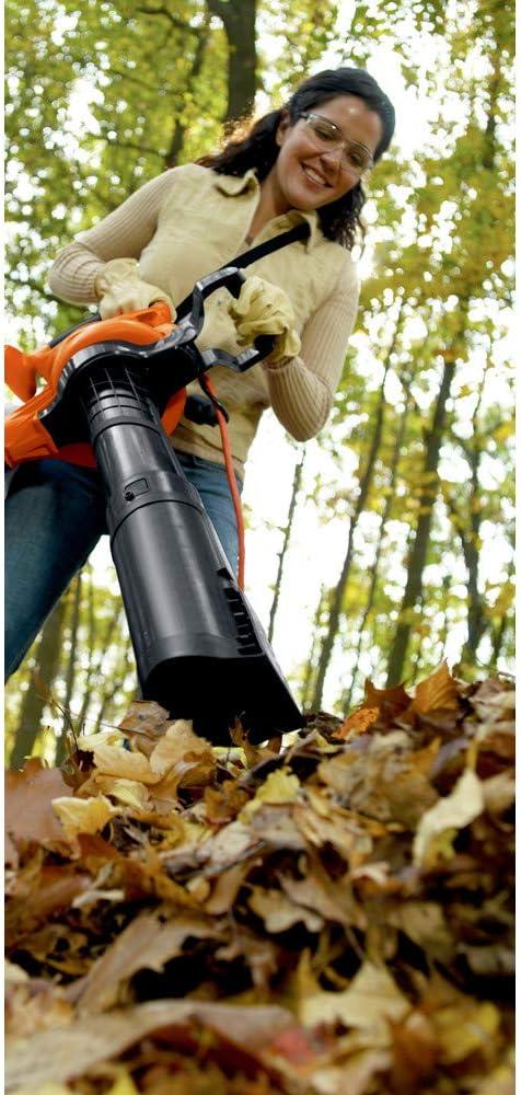 Curb appeal is easy to achieve with the BLACK+DECKER 12 Amp 3in1 electric leaf blower + vacuum + mulcher. Converting it from a corded leaf blower to a vacuum to a mulcher is simple, and the variable speed selection gives you total control over the amount of power you use. Select a lower air speed for clearing delicate areas like gardens and flowerbeds, or bump it up to 250 mph for powerful removal of stubborn leaves and grass clippings. The high-impact metal fan helps prevent clogging in mulching mode, which allows you to grind up to 16 bags of leaves down to 1. Plus, it comes with a reusable leaf bag that’s easy to empty. A built-in cord retainer helps keep it plugged in and powered up.