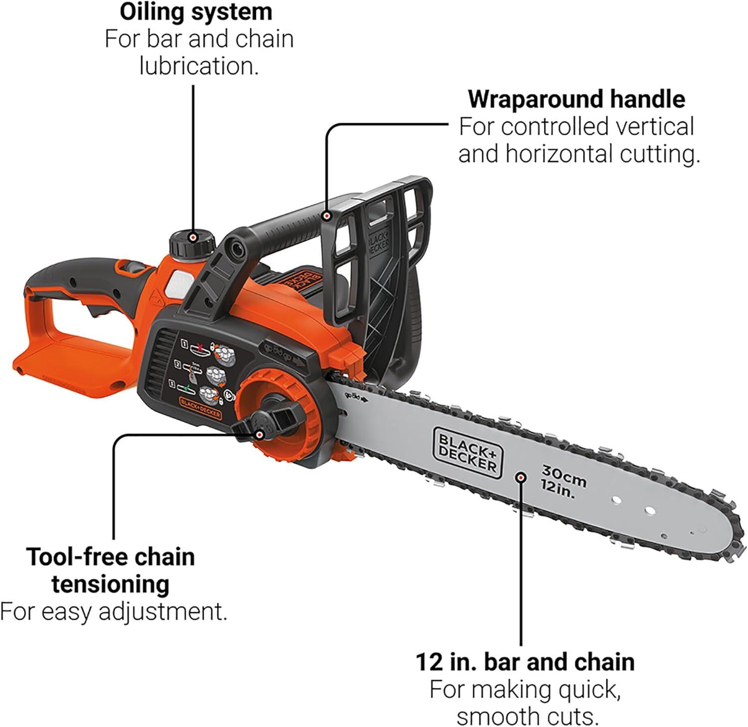 BLACK+DECKER 40V MAX* Cordless Chainsaw, Tool Only, 12 in. (LCS1240B)(40V Chainsaw Kit)