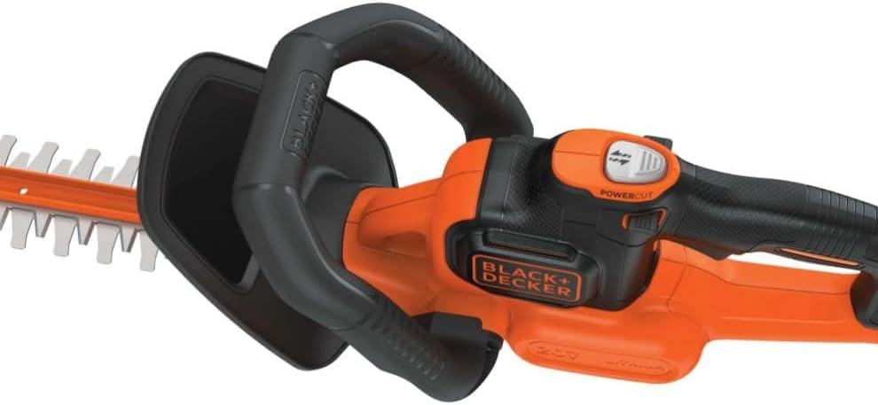 Sick of getting stuck on overgrown and unruly branches? With BLACK+DECKER’s 40V MAX* 24 in. cordless hedge trimmer, you’ll be able to keep working seamlessly. This hedge trimmer is designed with POWER-CUT technology, which lets you work through a jam at the push of a button. The powerful dual-action blade keeps vibration to a minimum as you cut branches up to 3/4 in. thick, making it ideal for trimming back hedges, shrubs, and bushes. And thanks to a comfortable ergonomic handle, your grip will stay secure. Plus, this cordless hedge trimmer is part of the POWERCOMMAND system, and the rechargeable 40V MAX* lithium ion battery is compatible with other tools in its family. *Maximum initial battery voltage (measured without a workload) is 40 volts. Nominal voltage is 36 volts.