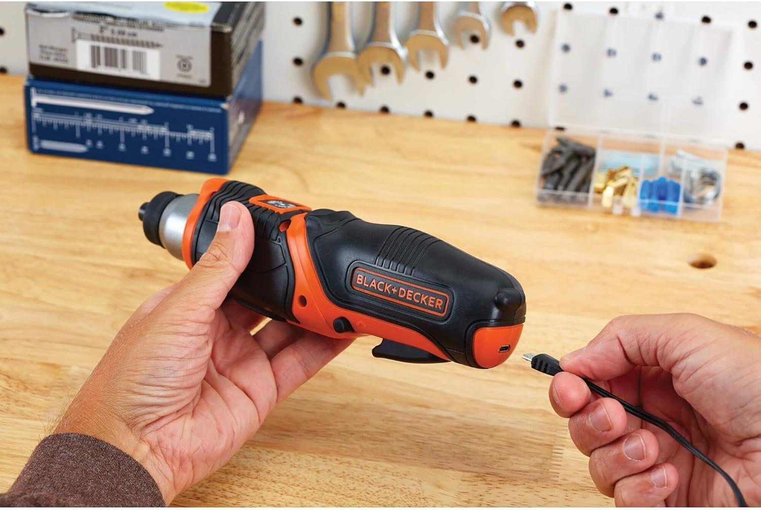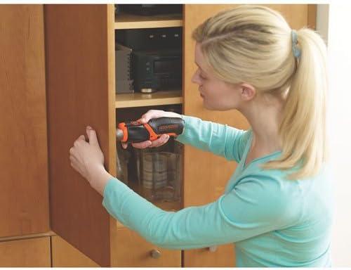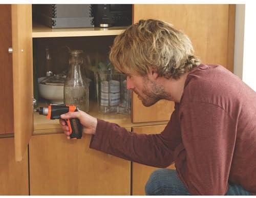 When it comes to quick household repairs, the BLACK+DECKER 4V MAX* cordless pivot screwdriver certainly makes things a little easier. It’s compact, lightweight, and a cinch to maneuver in cramped spaces thanks to its pivot function. An over-molded handle and finger grip help keep you comfortable from start to finish. The built-in LED work light illuminates dark areas and your worksurface, while the magnetic bit holder keeps an extra bit on standby. Plus, this screwdriver is designed with a battery status indicator, so you’ll always know how much power you have left. And it also comes with an accessories kit that’s perfect for hanging pictures and basic screwdriving tasks.