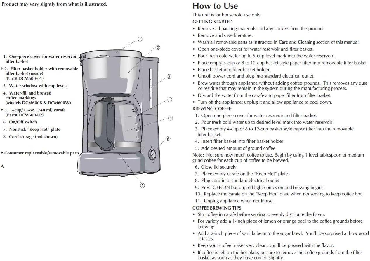 BLACK+DECKER 5-Cup Coffeemaker, Black, DCM600B(12-Cup)