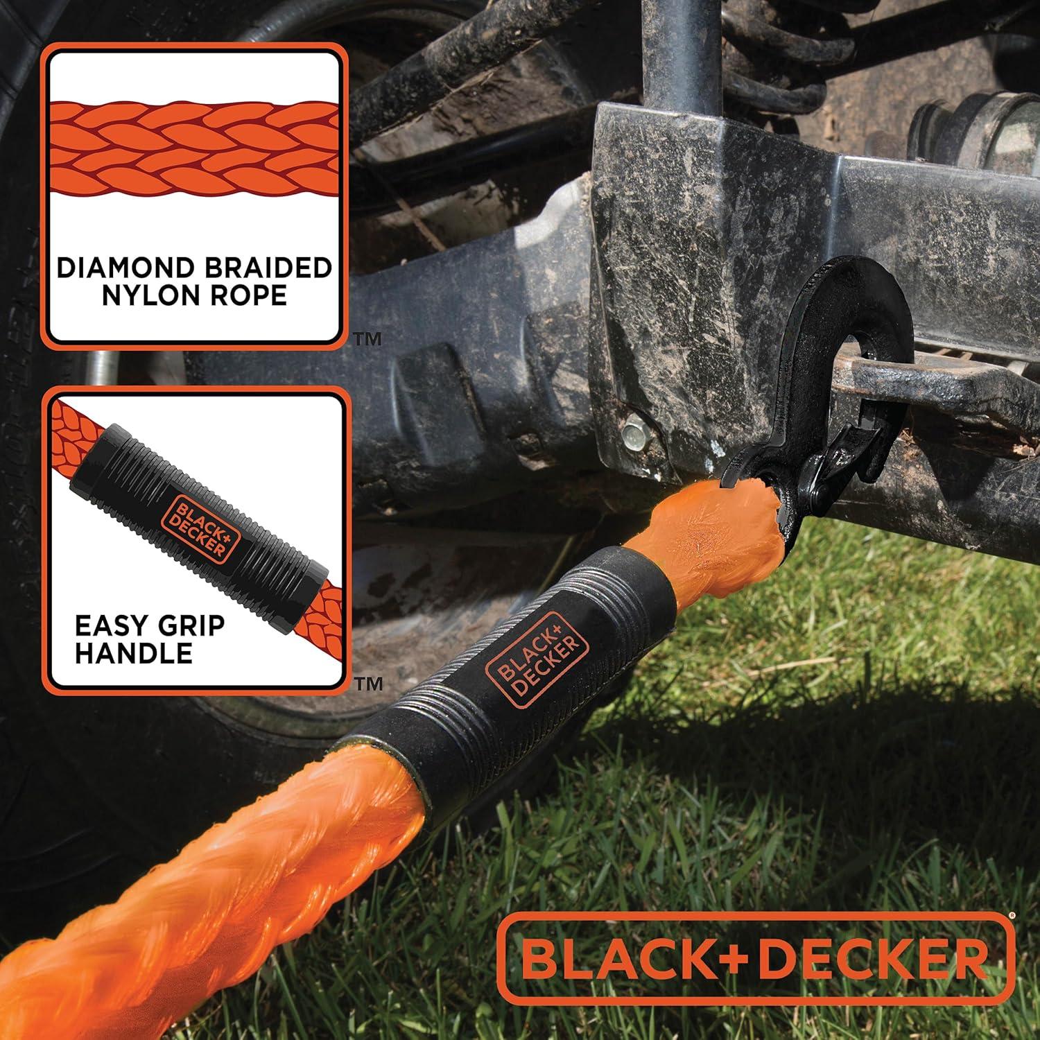 BLACK+DECKER BDX1009 Black/Orange 14′ Tow Rope with Easy Grip Handles and Steel Forged G-Clip Hooks (4,500 lb Break Strength)(Recovery Strap (Light Duty))