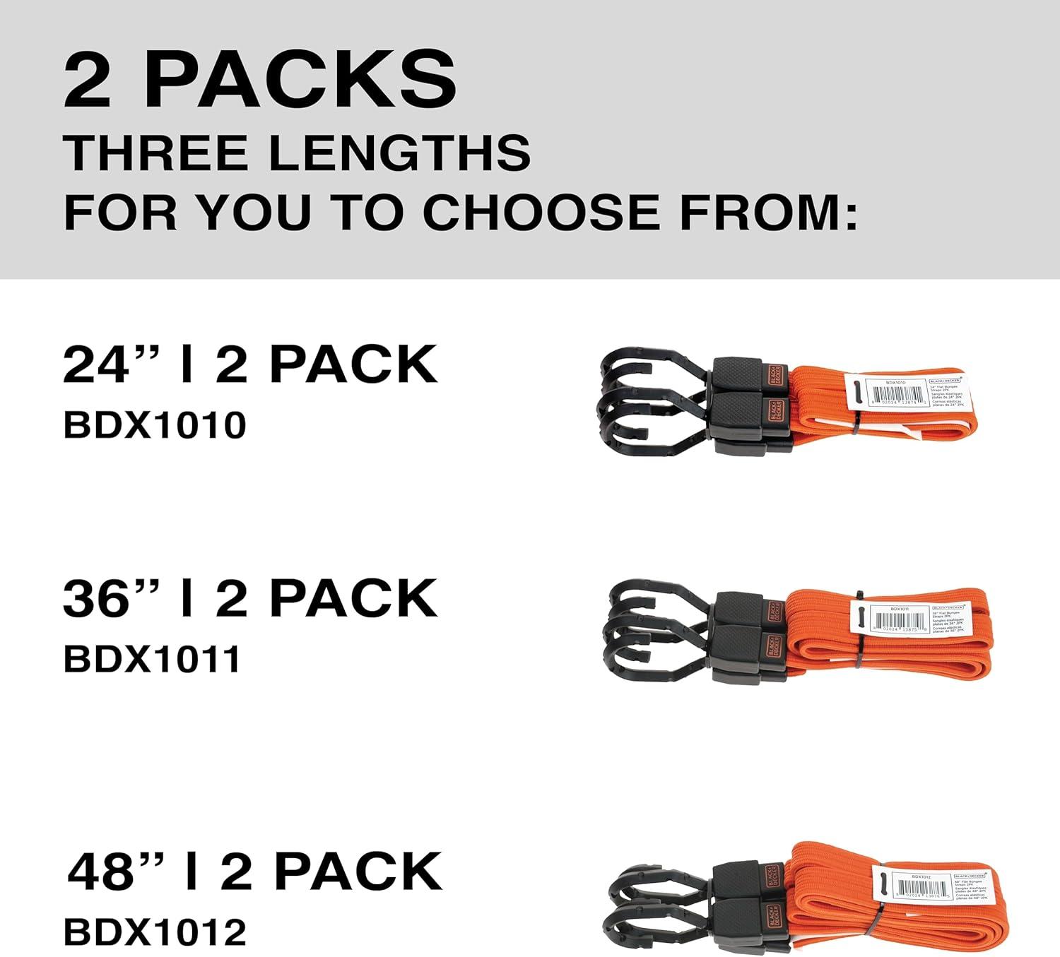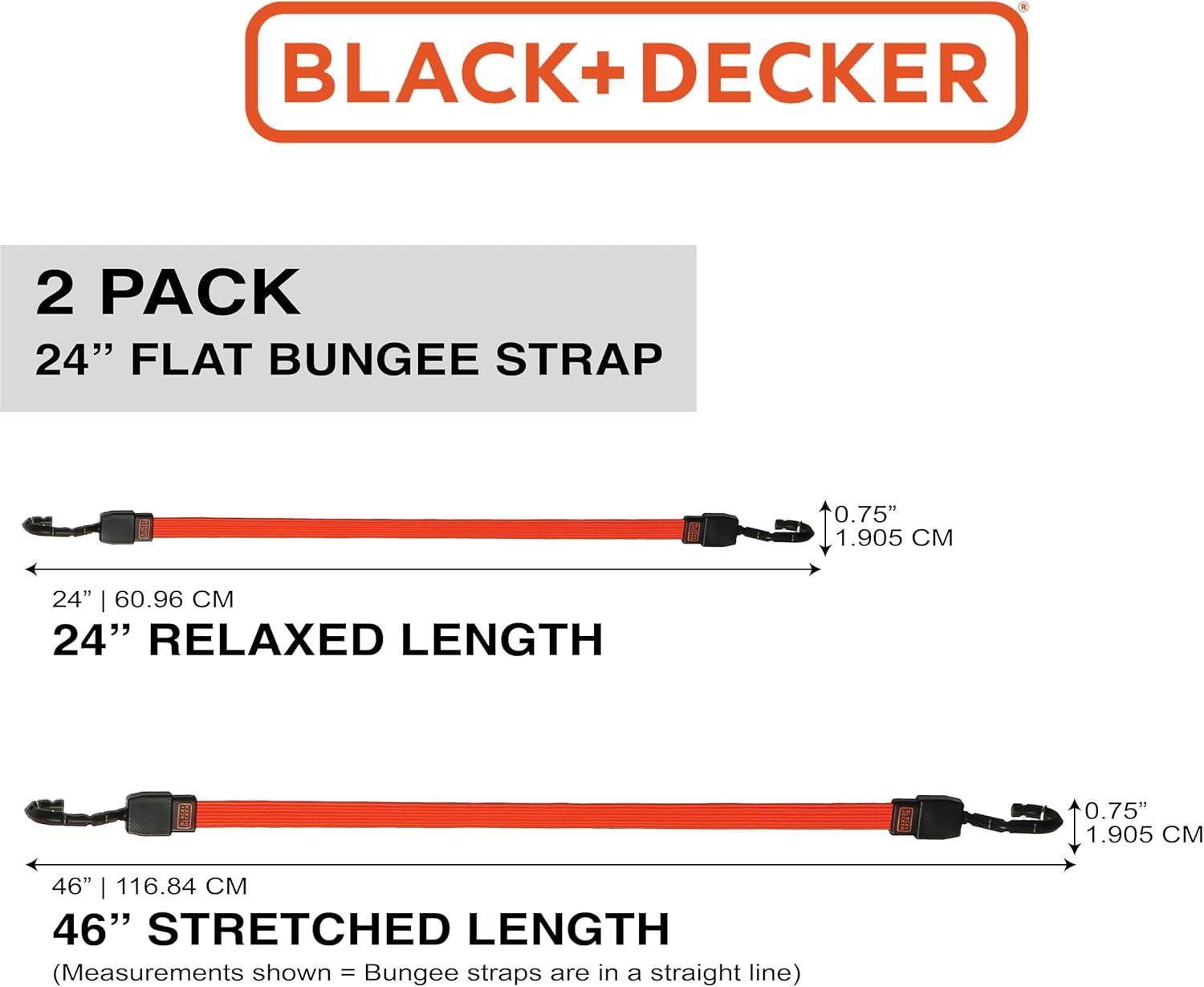 BLACK+DECKER BDX1010 Black/Orange 24" Flat Bungee Cord Straps, 2 Pack
