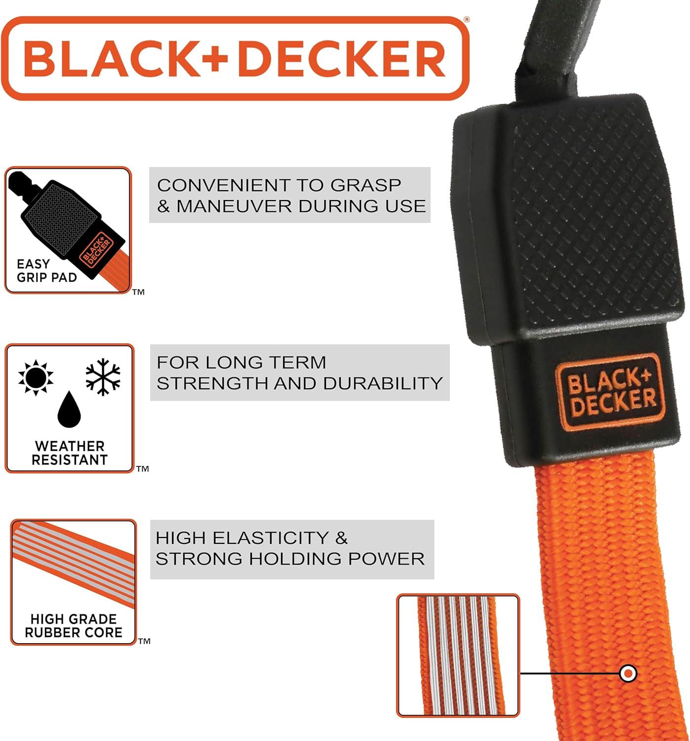BLACK+DECKER BDX1010 Black/Orange 24″ Flat Bungee Cord Straps, 2 Pack