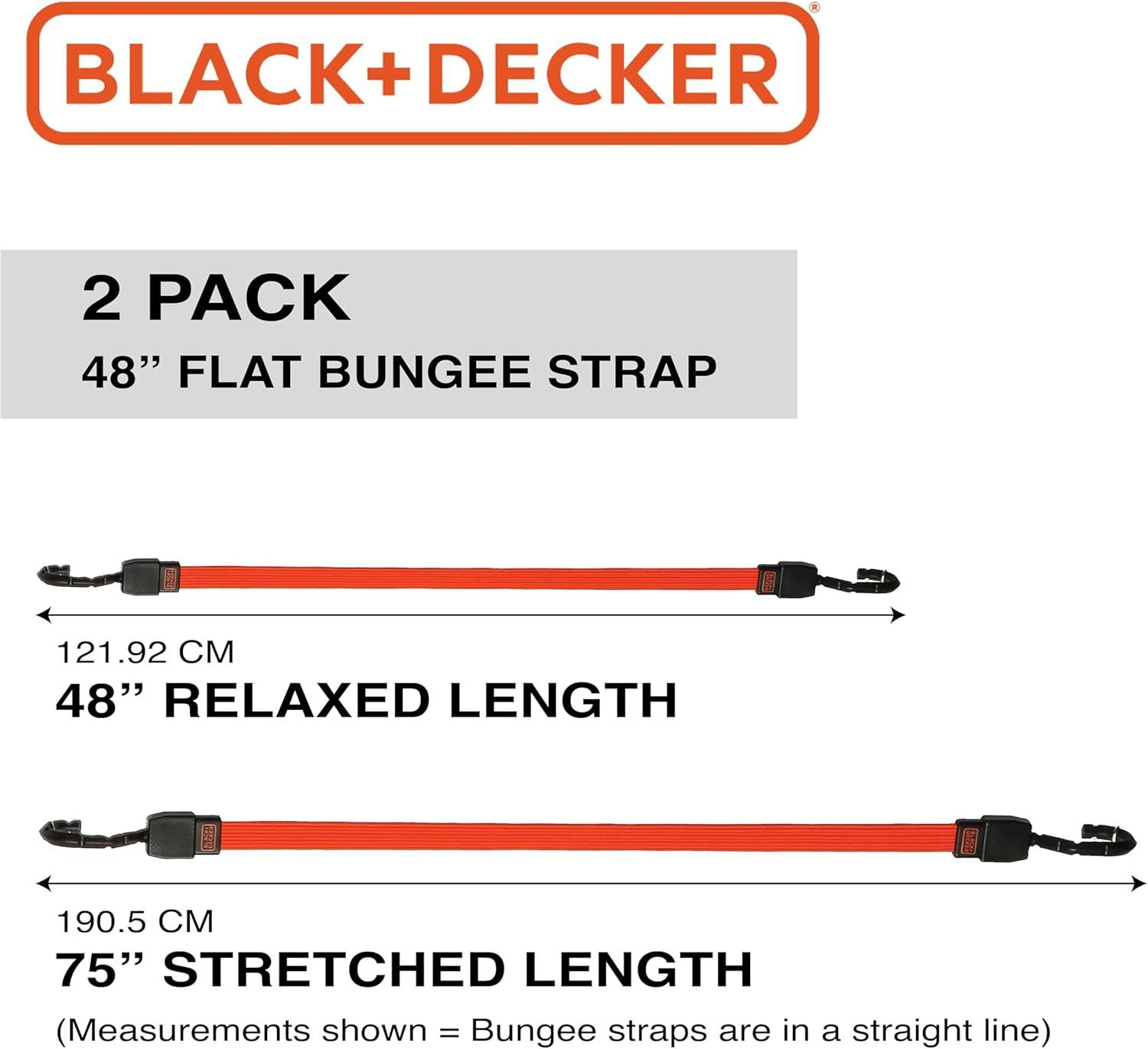 BLACK+DECKER BDX1012 Black/Orange 48" Flat Bungee Cord Straps, 2 Pack