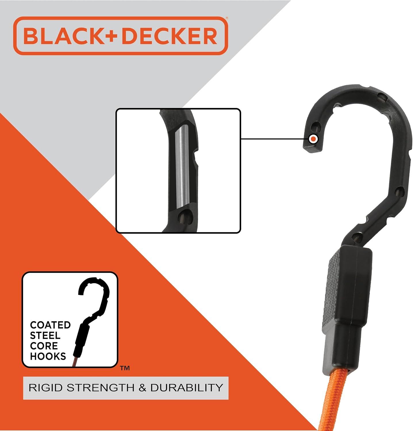 BLACK+DECKER BDX1012 Black/Orange 48″ Flat Bungee Cord Straps, 2 Pack