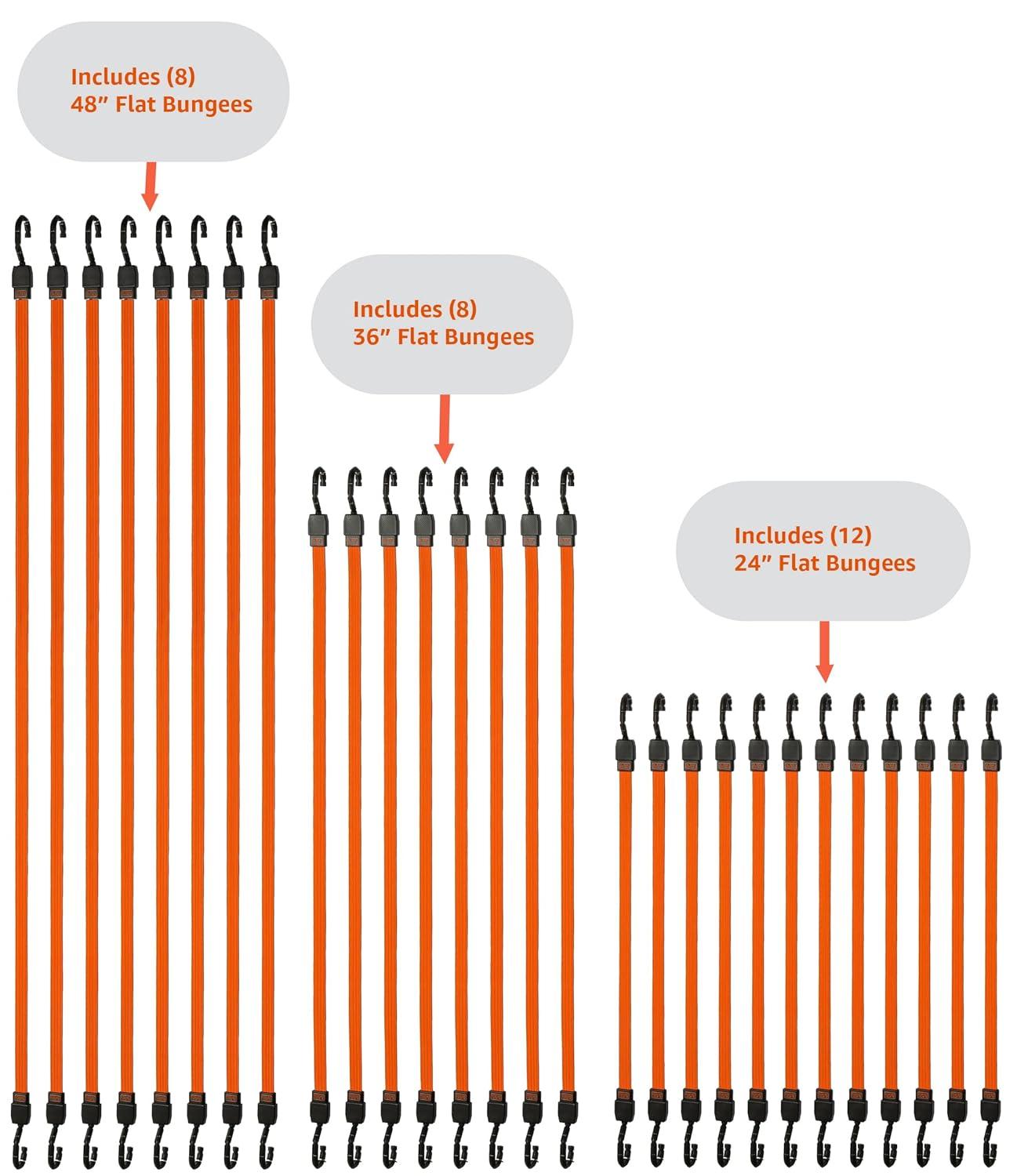 Amazon Exclusive Bundle: 28-Piece flat bungee cord straps including (8) 24″, (8) 36″, and (12) 48″