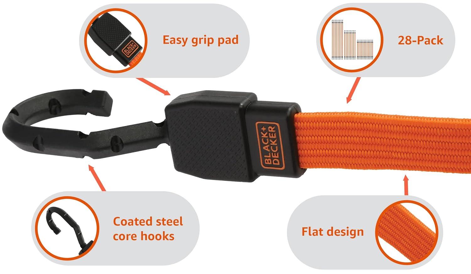 BLACK+DECKER BDX1015 28-Piece Premium Heavy-Duty 24", 36", 48" Flat Strap Bungee Cord Bundle(BDX1015)