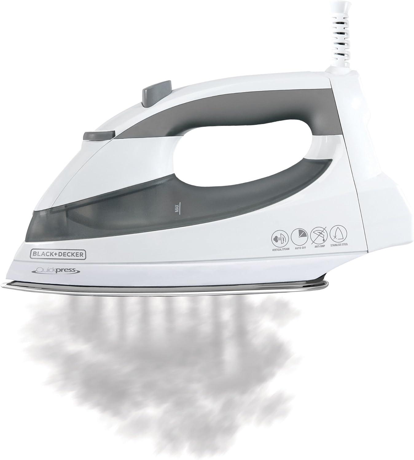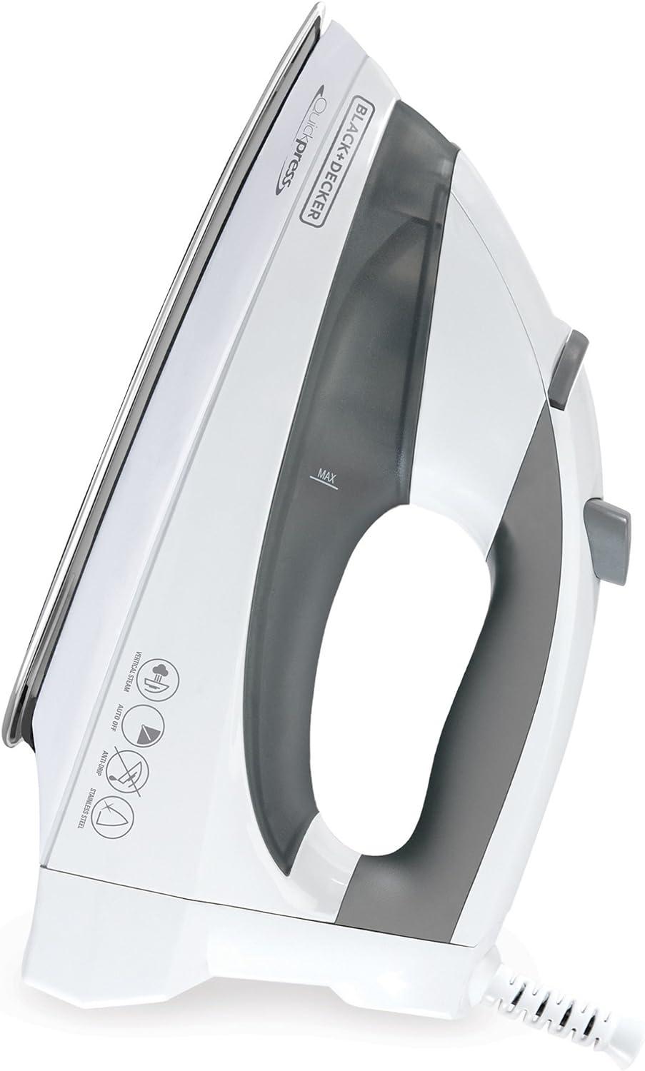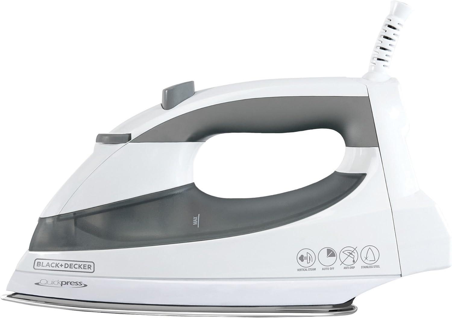 Make quick work of your ironing load with the BLACK + DECKER™ QuickPress Iron, featuring SmartSteam™ Technology. The stainless steel soleplate glides easily over all fabric types and the various steam settings let you find the perfect amount of moisture for getting rid of wrinkles on the ironing board or the hanger. Plus, 3-way auto shutoff provides added peace of mind with every use.