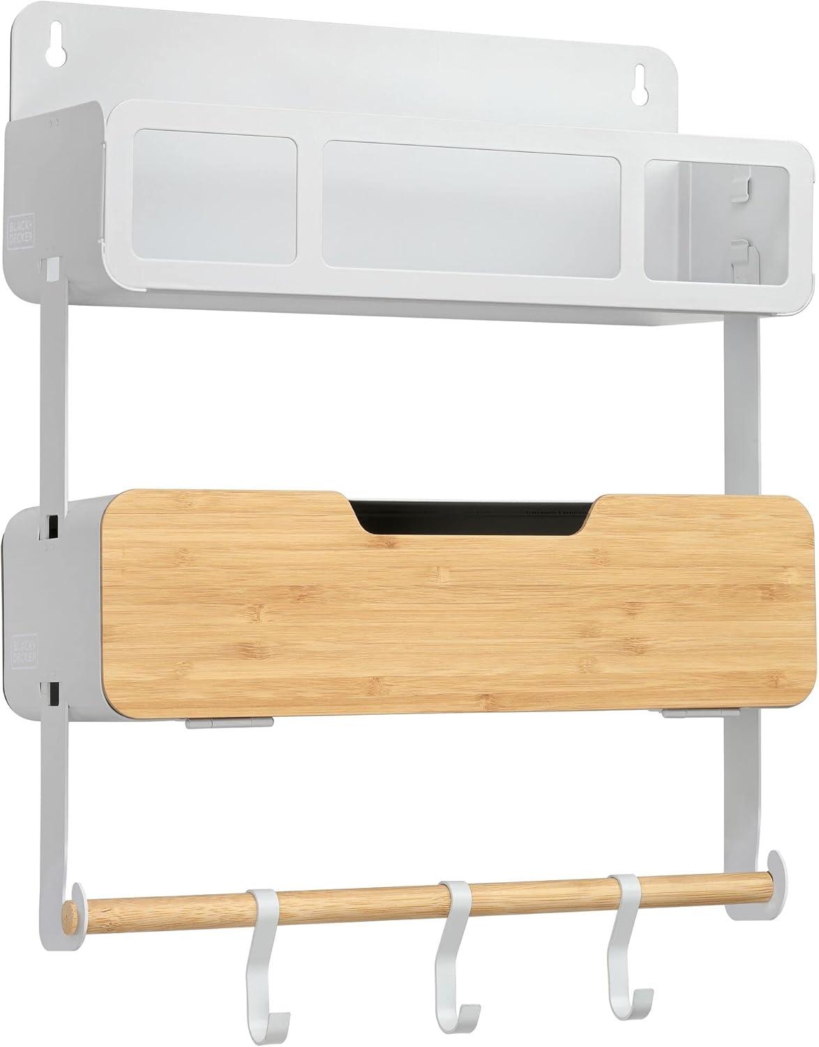 Organize clutter with the new BLACK+DECKER Hanging Storage System. Hang the storage system to get the most out of unused wall space or the side of your fridge. The system has interlocking brackets that easily click together for customization that best fits your space and organizational needs. Use one module in small spaces or connect as many as you need to fill a larger space. Each module includes two options for installation: magnetic or wall mounting. Choose between two colors to match your space. Easily organize your most used items in the kitchen, foyer, bathroom, laundry room, craft room, and beyond.