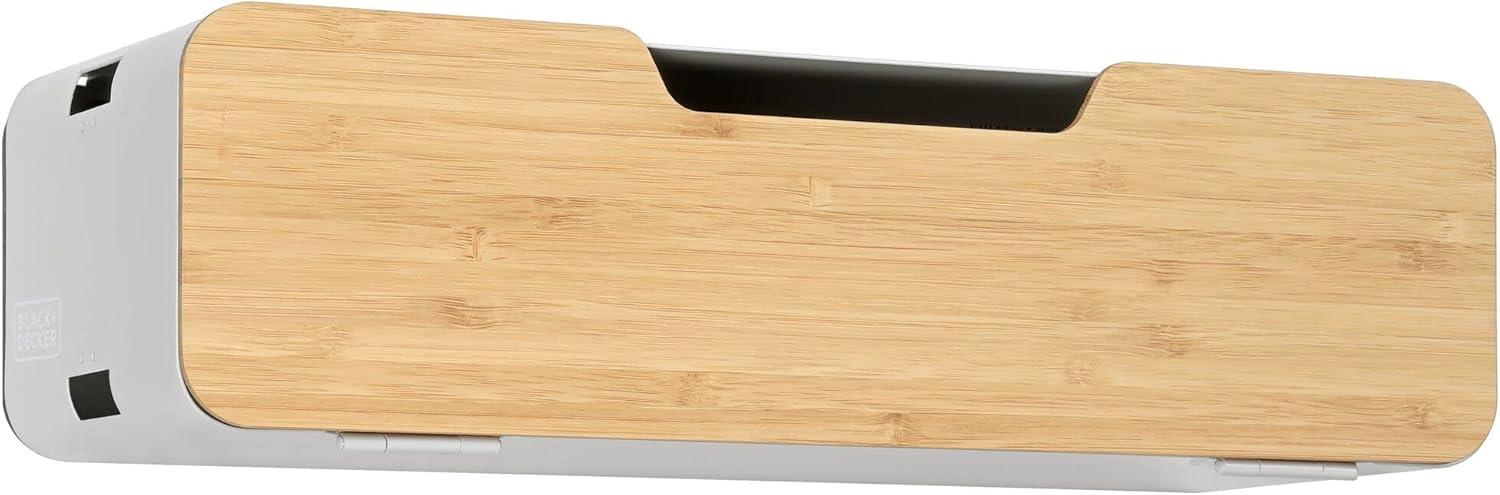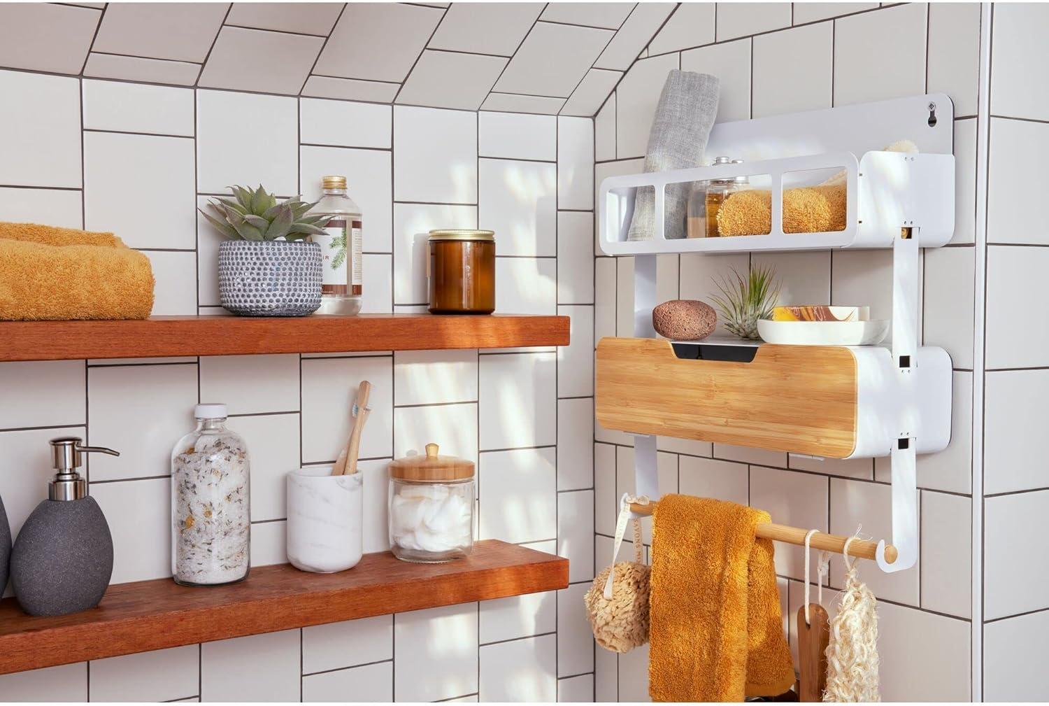 STYLISH FINISH: Satin-finished white with bamboo accents.