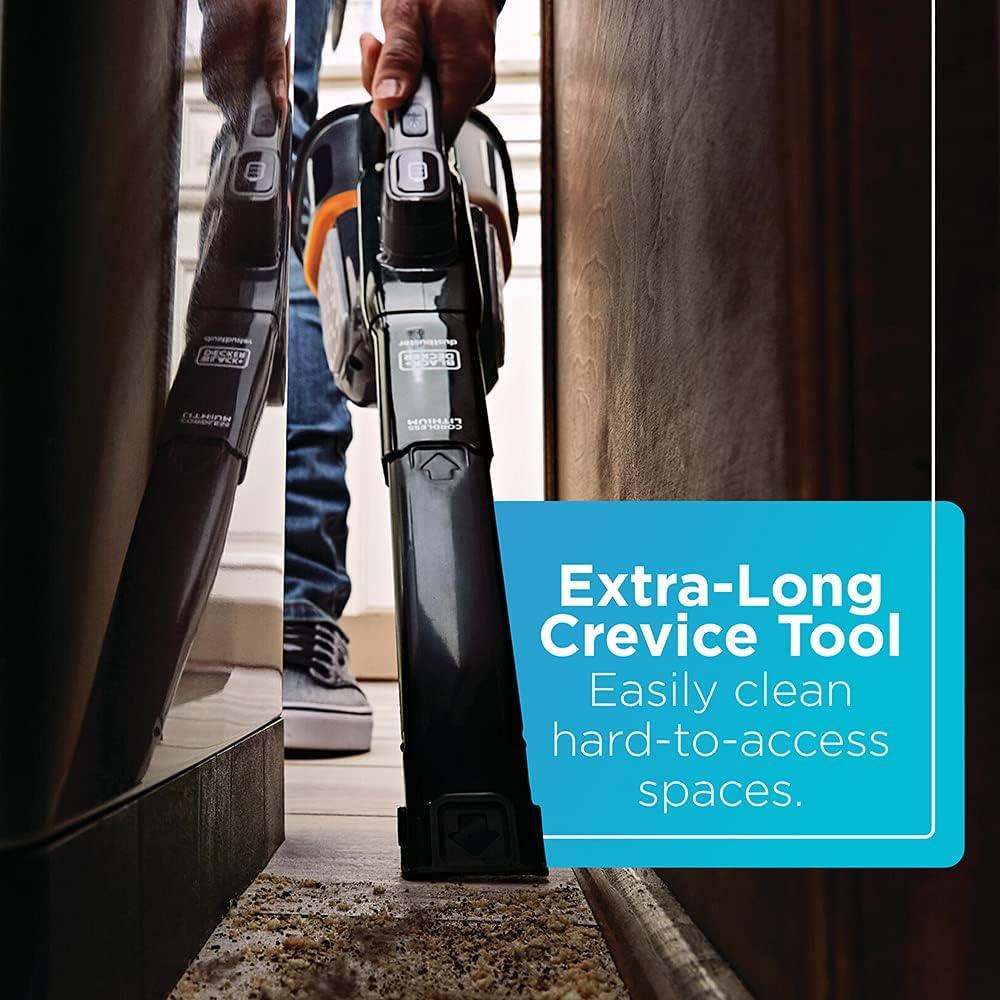 Extra long crevice tool: Clean hard to reach areas with less effort