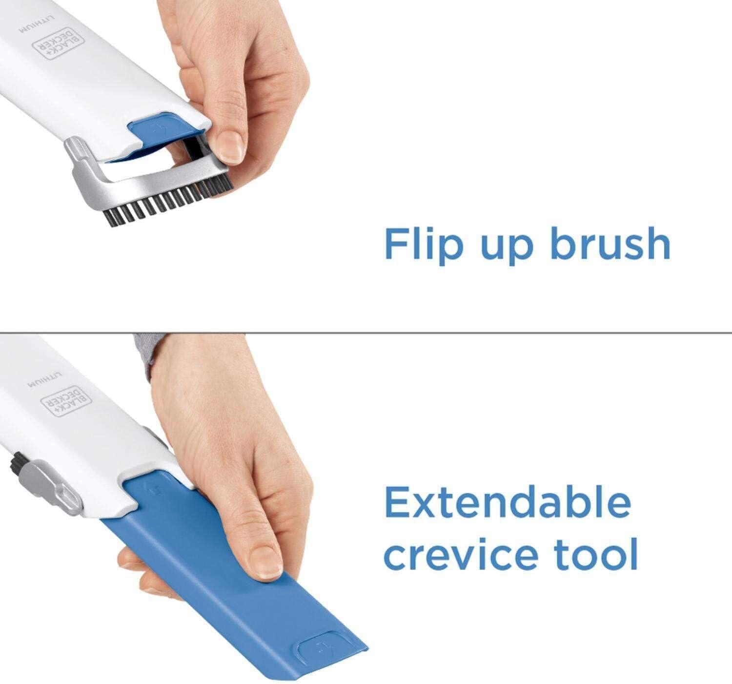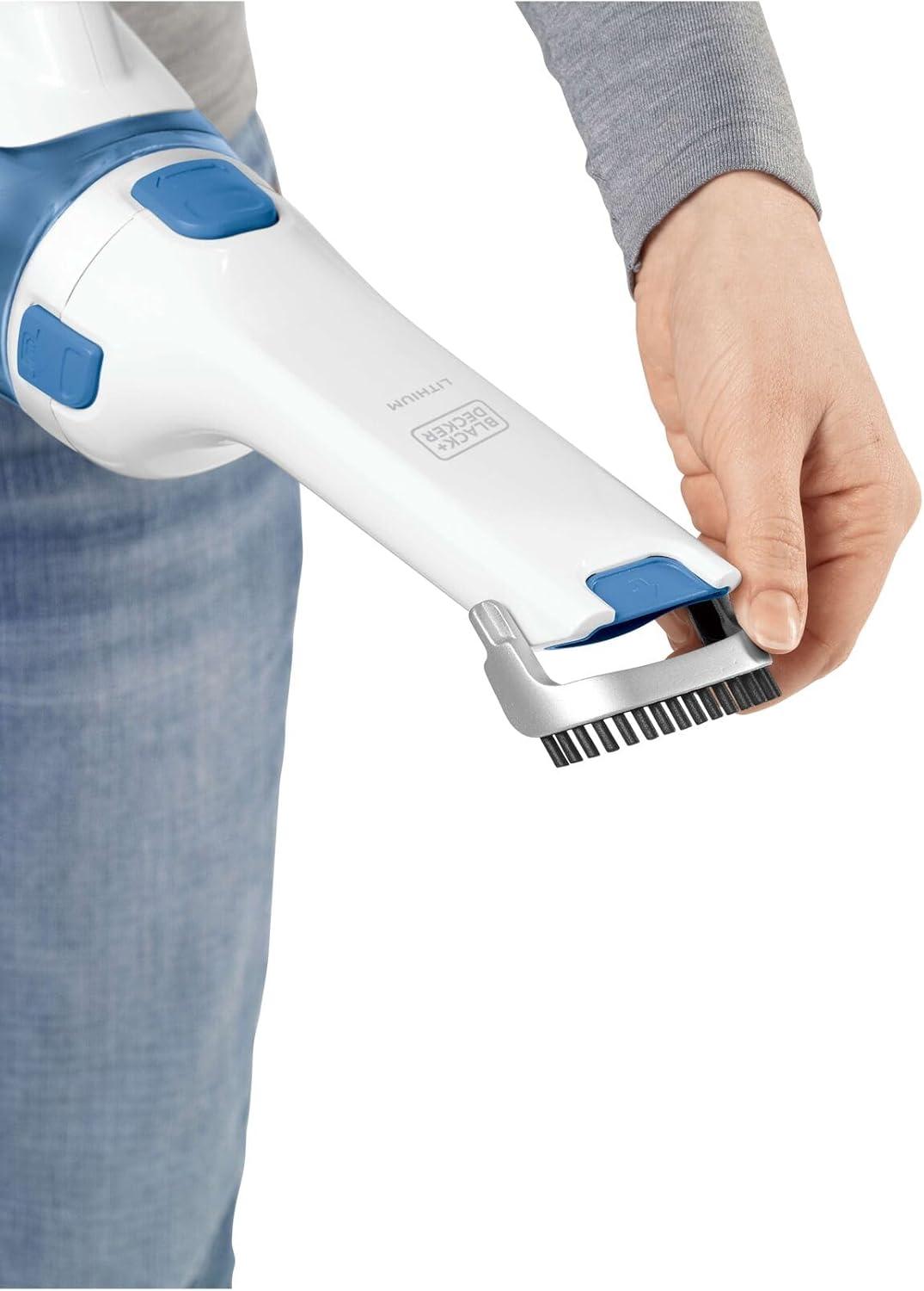 The BLACK+DECKER HHVI320JR02 dustbuster Cordless Handheld Vacuum (Magic Blue) is ideal for multipurpose cleaning to be used as your home vacuum, garage vacuum , car vacuum or boat vacuum. The lithium technology provides strong suction and extended run time. It has a washable bowl (20.6 oz.) and filter which allows for thorough cleaning between Jobs. The translucent, bagless dirt bowl makes it easy to see dirt and easy to empty. This rechargeable hand vacuum has a rotating nozzle for a comfortable hand position when accessing hard to reach areas, along with an extendable crevice tool that provides access to hard to reach areas and a flip up brush which allows you to dust and vacuum upholstery. The cyclonic action helps to keep the filter clean and suction strong. 2.0Ah. This vac has a lightweight and portable design which makes for convenient cleaning. A wall mount provides a versatile storage solution. Includes: hand vac, Jack plug charger, wall mount, extendable crevice tool, flip up brush. The rotating nozzle gives you a comfortable hand position when accessing hard to reach areas.