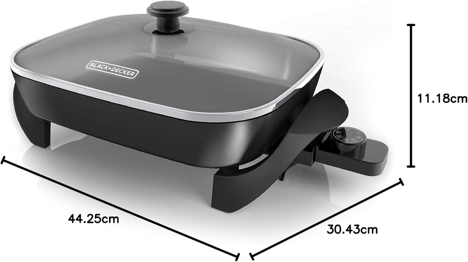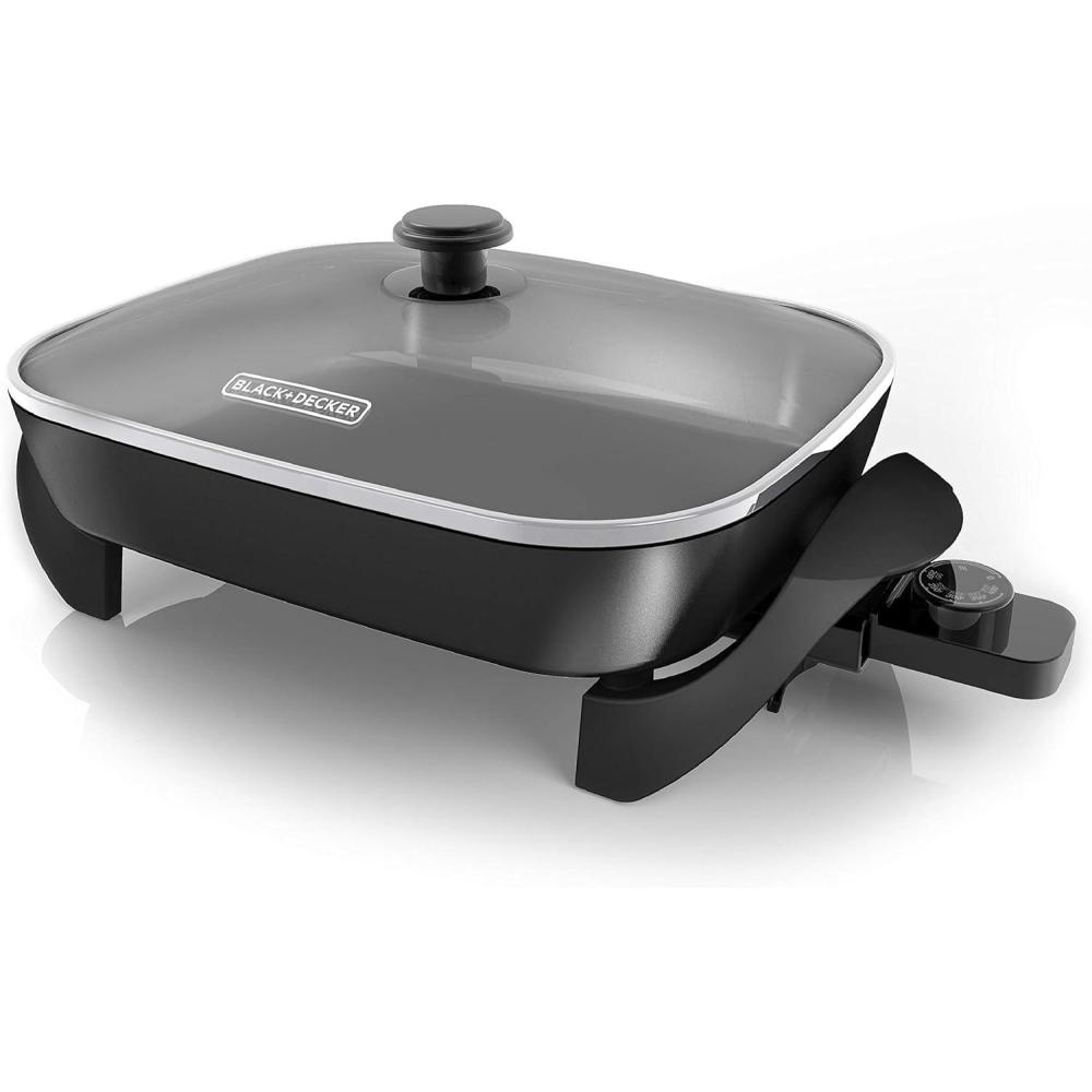 BLACK+DECKER Electric Skillet, Variable Temperature Control, Nonstick Cooking Surface, Dishwasher Safe, Tempered Glass Lid, 12"x15"(12" x 15")