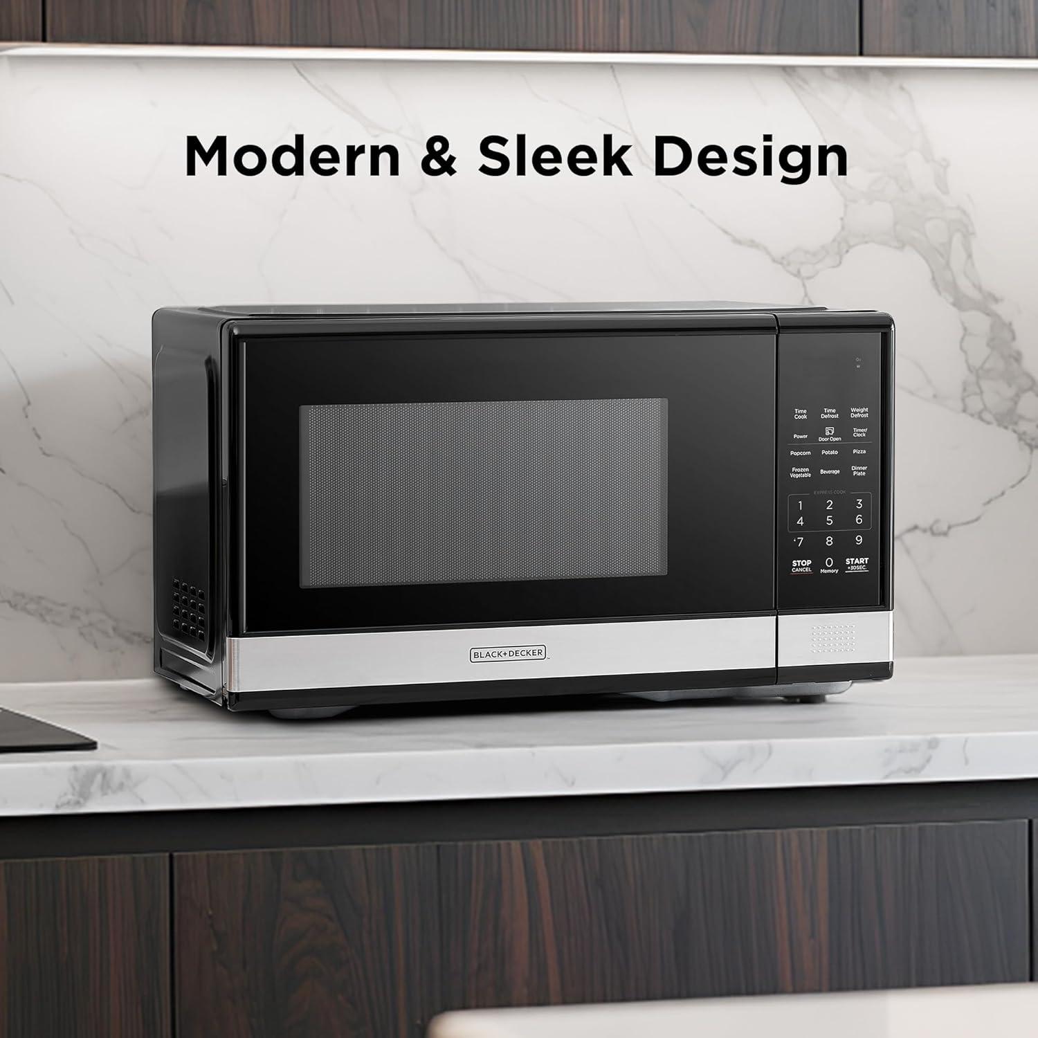 imageBLACKDECKER EM031MB11 Digital Microwave Oven with Turntable PushButton Door Child Safety Lock 1000W 11cuft Black ampamp Stainless Steel 11 Cuft11 Cuft