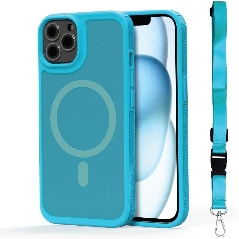 BLACK+DECKER for iPhone 14 Cases, Compatible with MagSafe, Shockproof Military-Grade Protection, Magnetic Phone Case for iPhone 14, Blue [Changeable Buttons, Lanyard](Loch Ness)