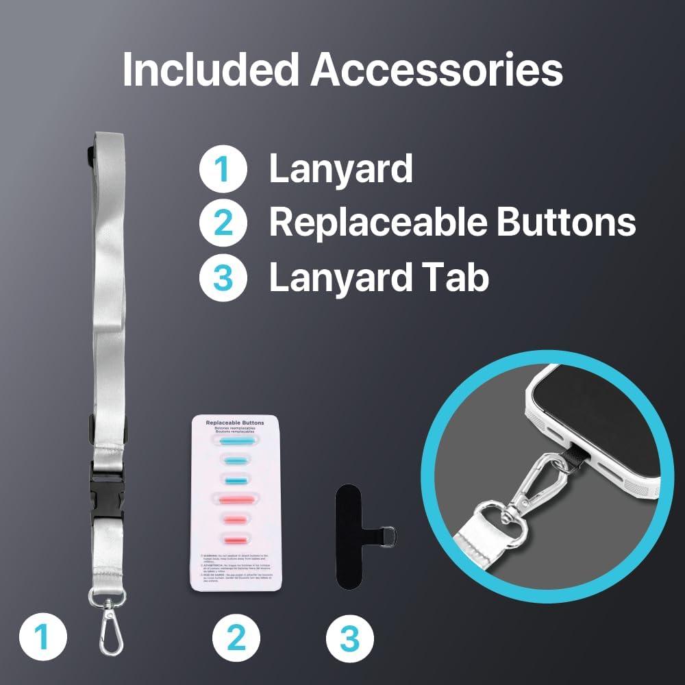 Customize Your Look: Personalize your phone case with interchangeable buttons, a convenient lanyard tab, and included lanyard, allowing you to express your unique style effortlessly with your iPhone 14