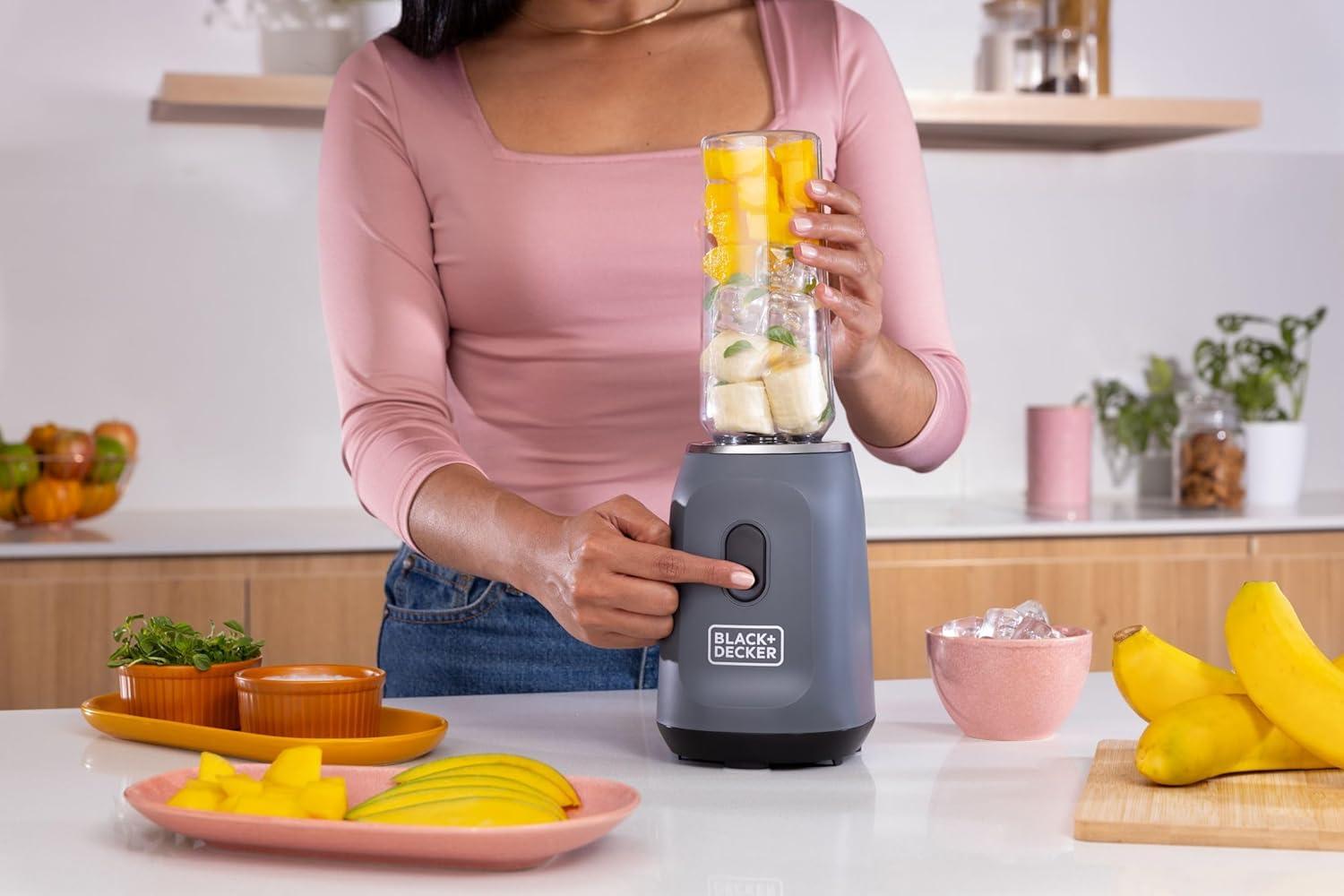 BLACK+DECKER® Ice Crush Single Serve Blender with Pulse/ON Button, Base, Two 20oz Personal Blender Jars, Blade Assembly, Travel Lid, White(Gray)