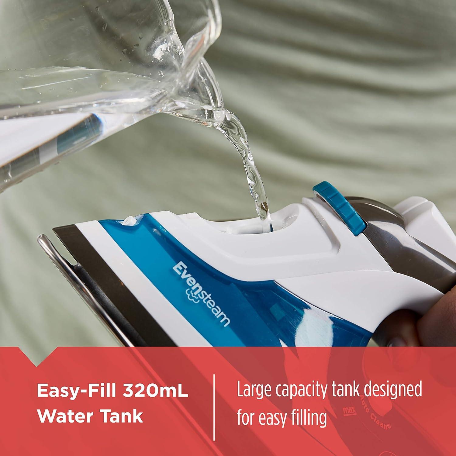 “From shirts and pants to curtains and drapes, ironing is simple with the BLACK+DECKER One Step Steam Cord Reel Iron. The new design* features the Even Steam Stainless Soleplate, which distributes steam more evenly from heel to tip for fast ironing. With Smart Steam Controls, the iron automatically regulates and optimizes steam levels based on the temperature you select for different fabric types. The automatic cord reel makes storage fast and easy with just the touch of a button. The Precision Point Soleplate makes it simple to navigate around buttons, collars, and creases for crisp, detailed results. Other features include: easy-fill water tank, 3-way automatic shutoff, Auto Clean system, burst of steam, and vertical steam. A full suite of useful features makes BLACK+DECKER the trusted name in clothes irons. *compared to BLACK+DECKER ICR07X”