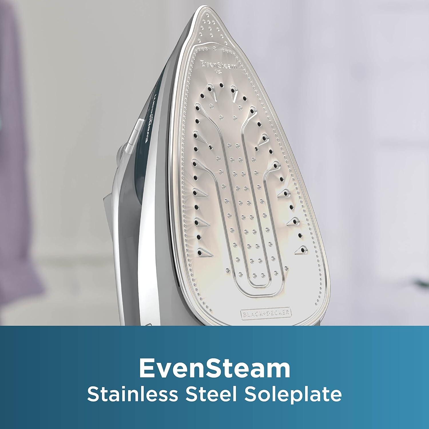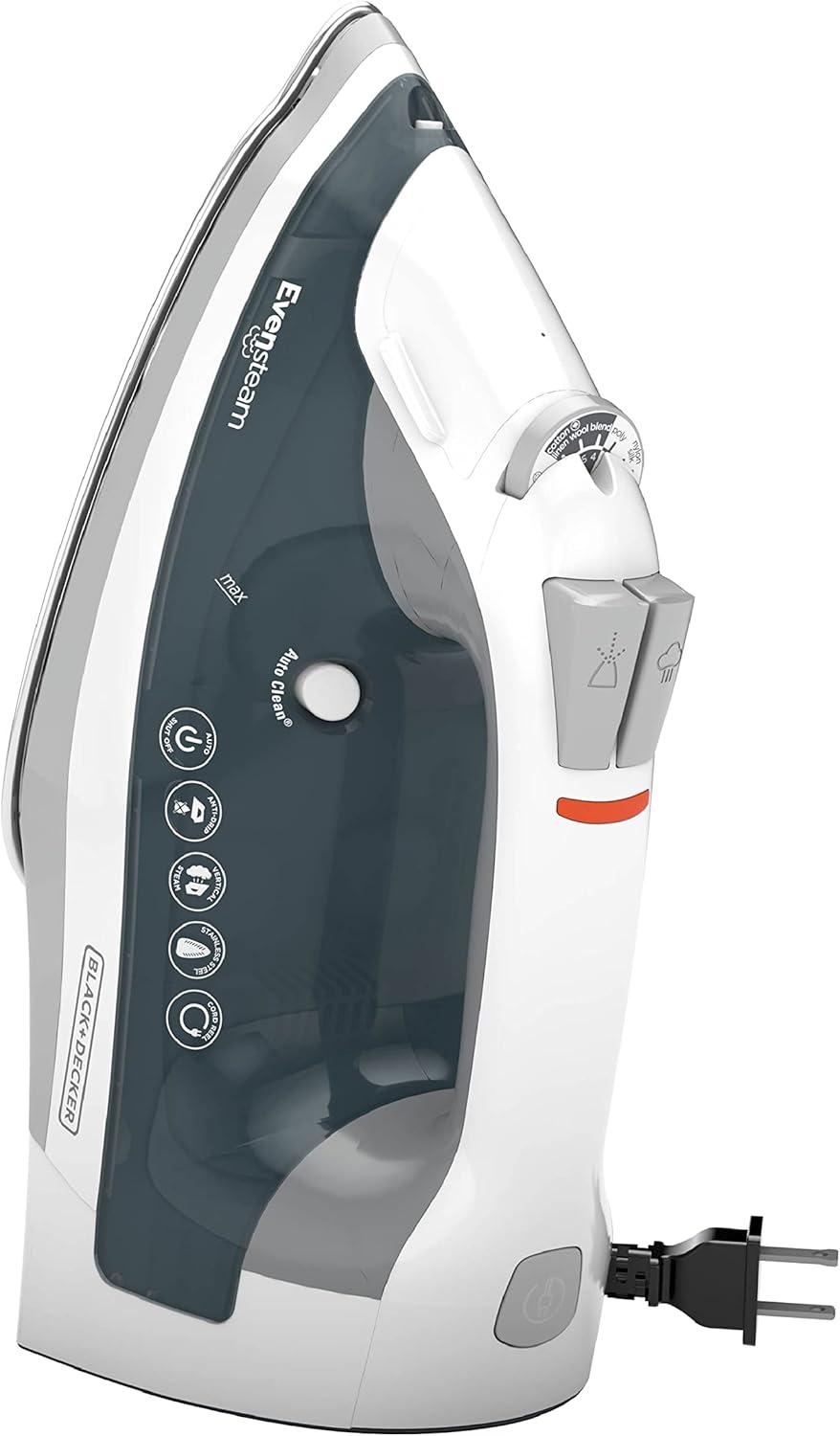 “From shirts and pants to curtains and drapes, ironing is simple with the BLACK+DECKER One Step Steam Cord Reel Iron. The new design* features the Even Steam Stainless Soleplate, which distributes steam more evenly from heel to tip for fast ironing. With Smart Steam Controls, the iron automatically regulates and optimizes steam levels based on the temperature you select for different fabric types. The automatic cord reel makes storage fast and easy with just the touch of a button. The Precision Point Soleplate makes it simple to navigate around buttons, collars, and creases for crisp, detailed results. Other features include: easy-fill water tank, 3-way automatic shutoff, Auto Clean system, burst of steam, and vertical steam. A full suite of useful features makes BLACK+DECKER the trusted name in clothes irons. *compared to BLACK+DECKER ICR07X”