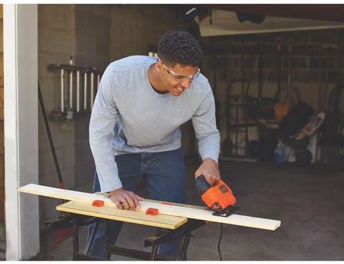 Bring your projects to life and check off home remodeling and repairs with the BLACK+DECKER 4.5 Amp electric jig saw. The variable-speed motor delivers 3,000 spm, allowing you to make quick cuts on a variety of materials. This compact, lightweight jig saw is designed with a tilting base plate for beveled cuts, while the quick-clamp system lets you swap out blades without having to reach for extra tools. Plus, the wire guard provides a clear sightline for enhanced accuracy. You won’t have to worry about excess debris getting in your way because the built-in dust blower keeps sawdust to a minimum. And since this jig saw runs on electricity, you’ll stay powered up until the job is done.