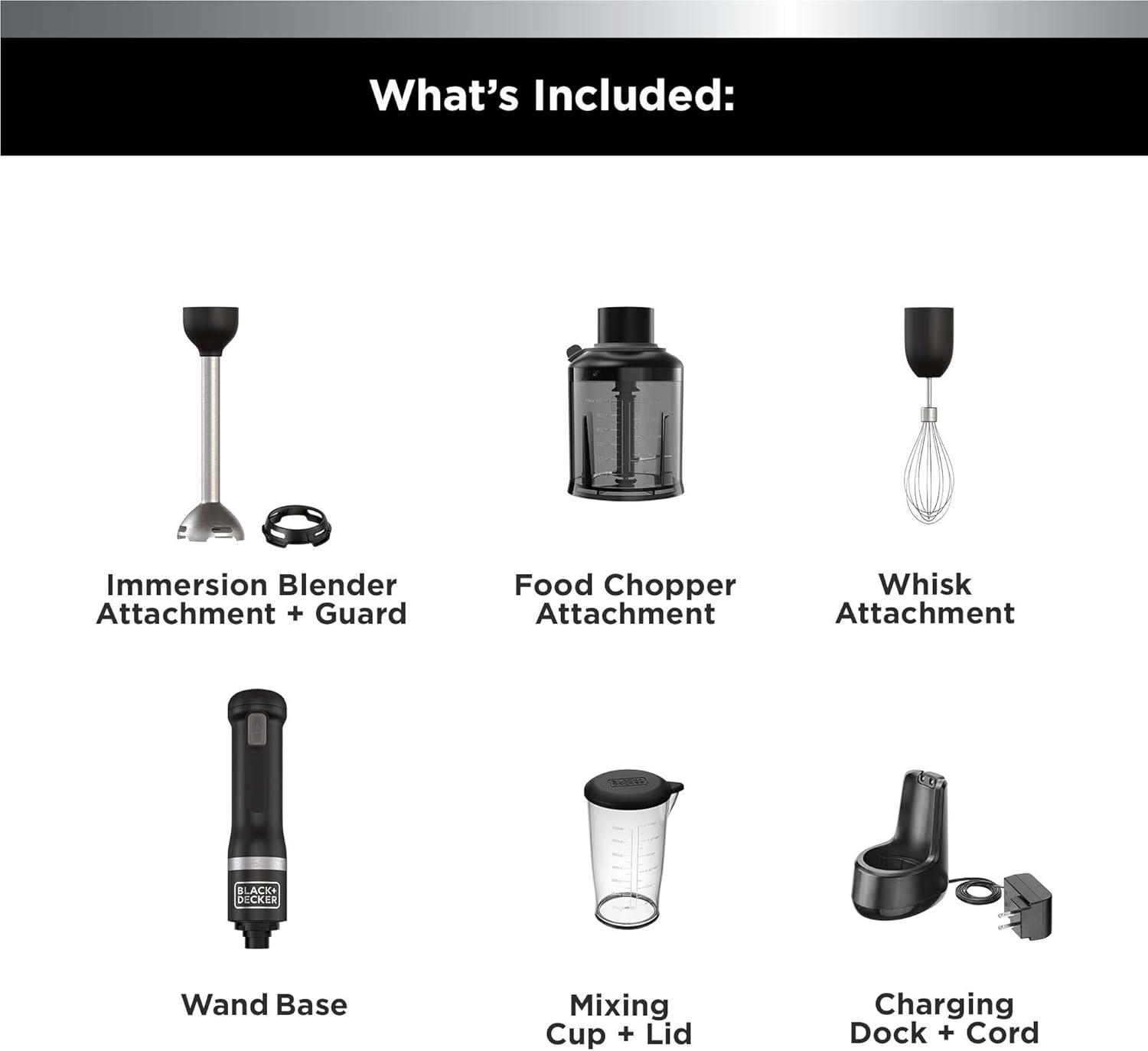 MULTIFUNCTIONAL: The ultimate kitchen sidekick, the BLACK+DECKER kitchen wand system helps you with a variety of cooking and prepping applications. Blend, whisk, and chop with the 3 included attachments