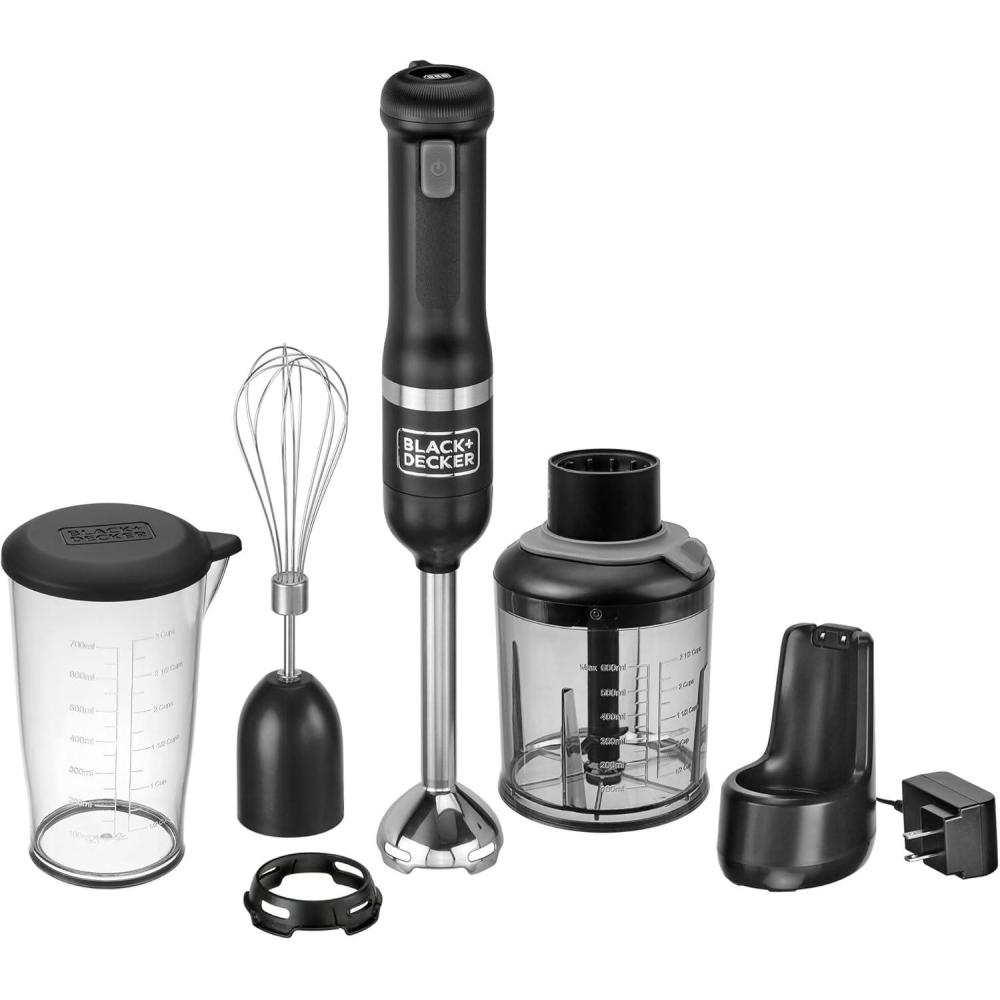 BLACK+DECKER Kitchen Wand Cordless Immersion Blender, 3 in 1 Multi Tool Set, Hand Blender with Charging Dock, Whisk, and Chopper, Red (BCKM1013K06)(Black)