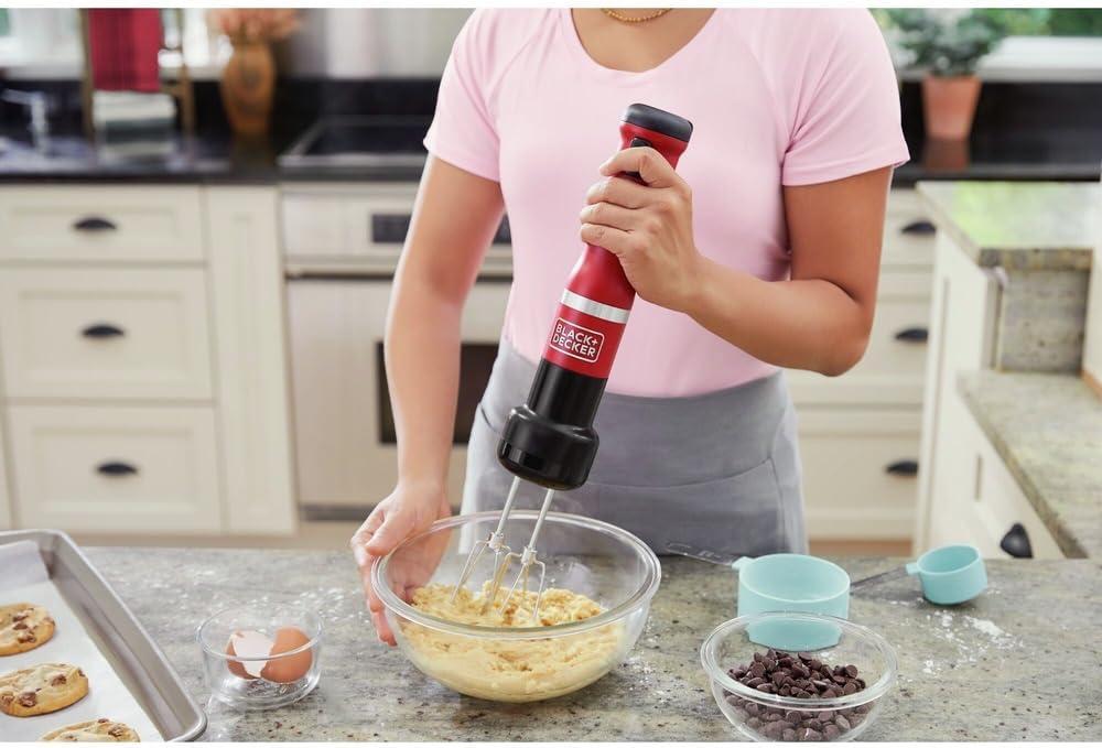 BLACK+DECKER Kitchen Wand Cordless Immersion Blender, 4 in 1 Multi Tool Set, Hand Blender with Charging Dock, Grey (BCKM1014K01)(Red)