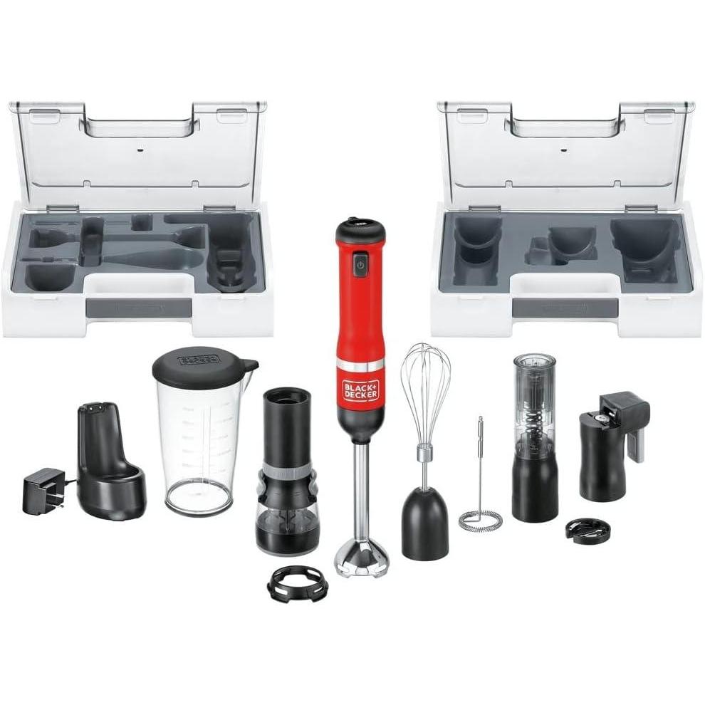 BLACK+DECKER Kitchen Wand Cordless Immersion Blender, 6 in 1 Multi Tool Set, Hand Blender with Charging Dock, Red (BCKM1016KS06)(Red)